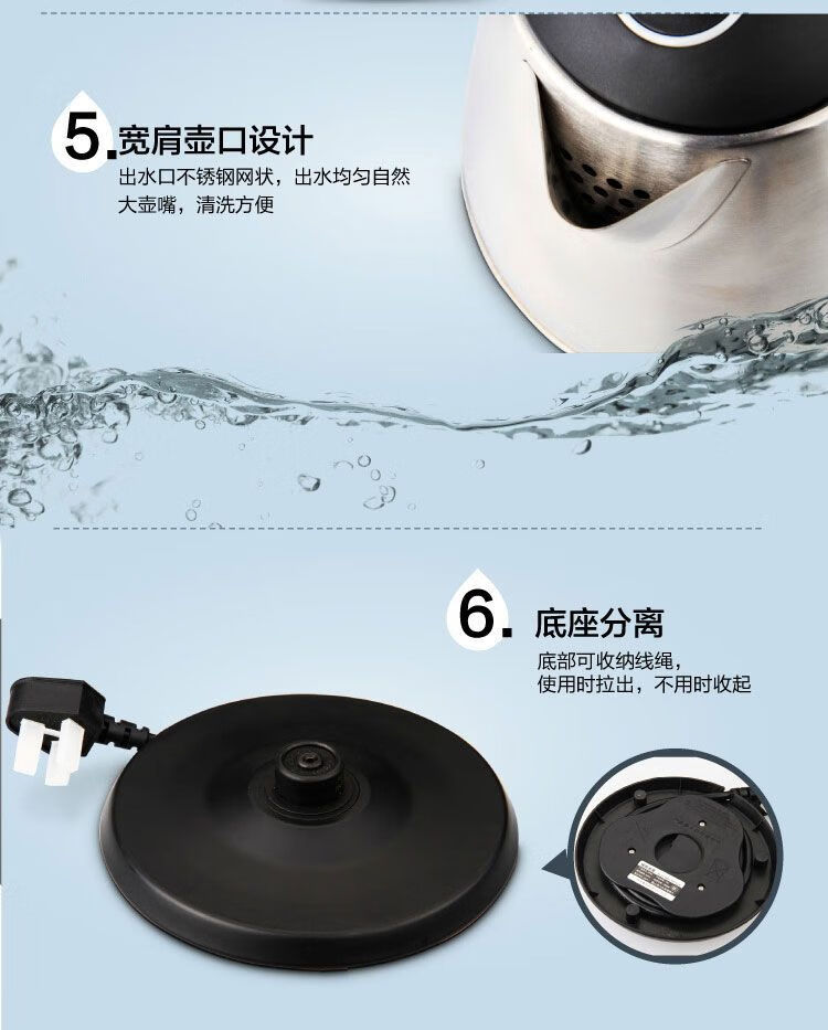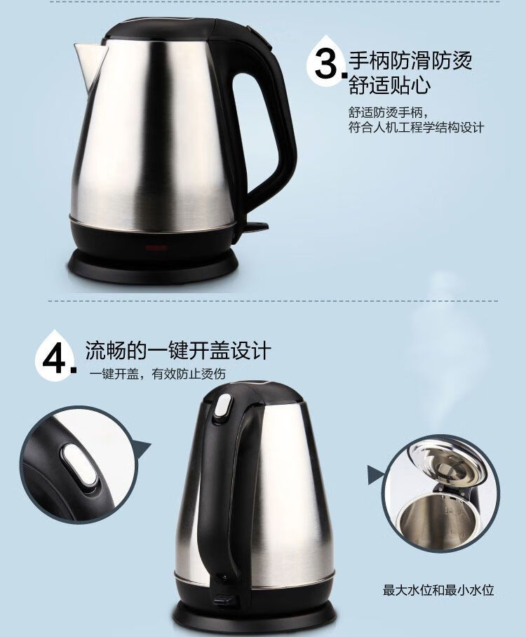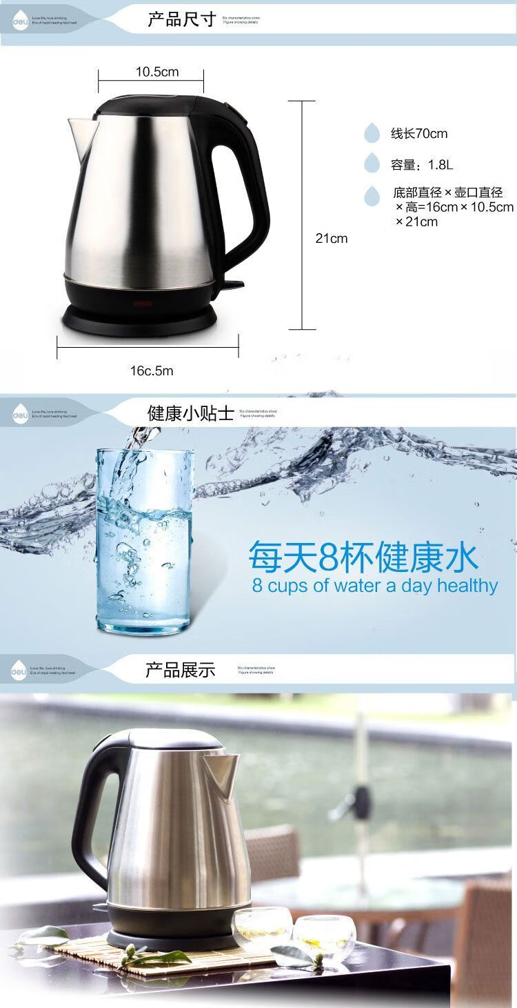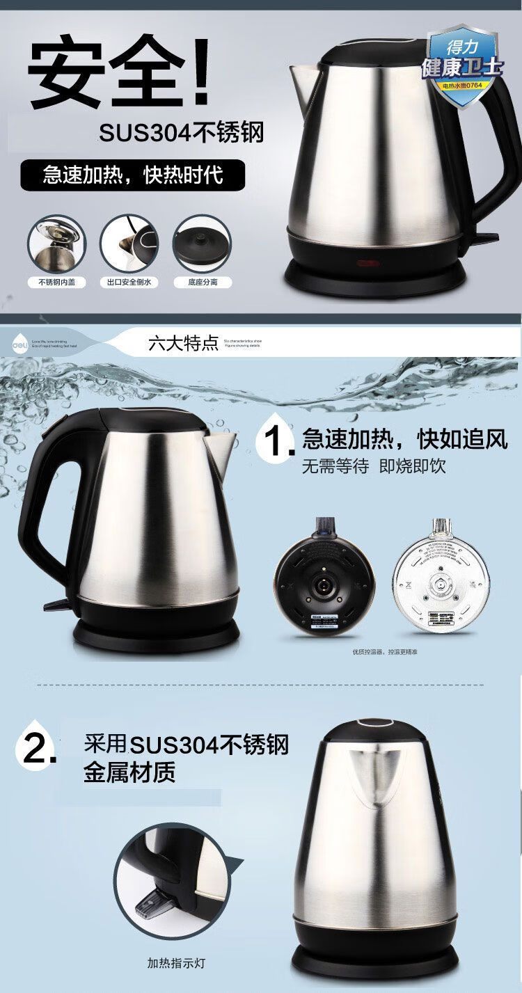 商品名稱(chēng):得力0764 電水壺 不銹鋼防燙傷電熱水壺雙層防滑燒水壺1.8L 自動(dòng)斷電
