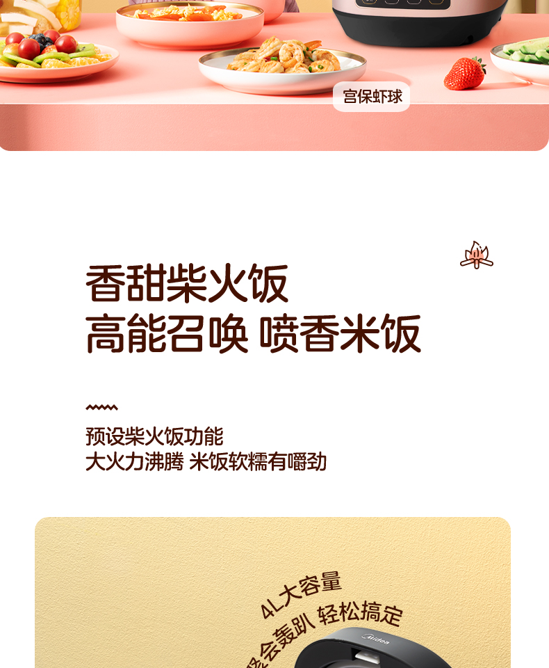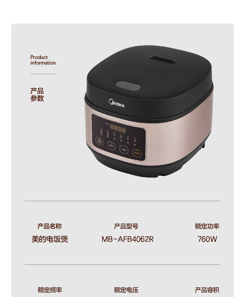 商品名稱:美的MB-AFB4062R 電飯煲 電飯鍋底盤加熱智能自動4L不粘鍋聚能釜定時(shí)預(yù)約燒湯燒飯