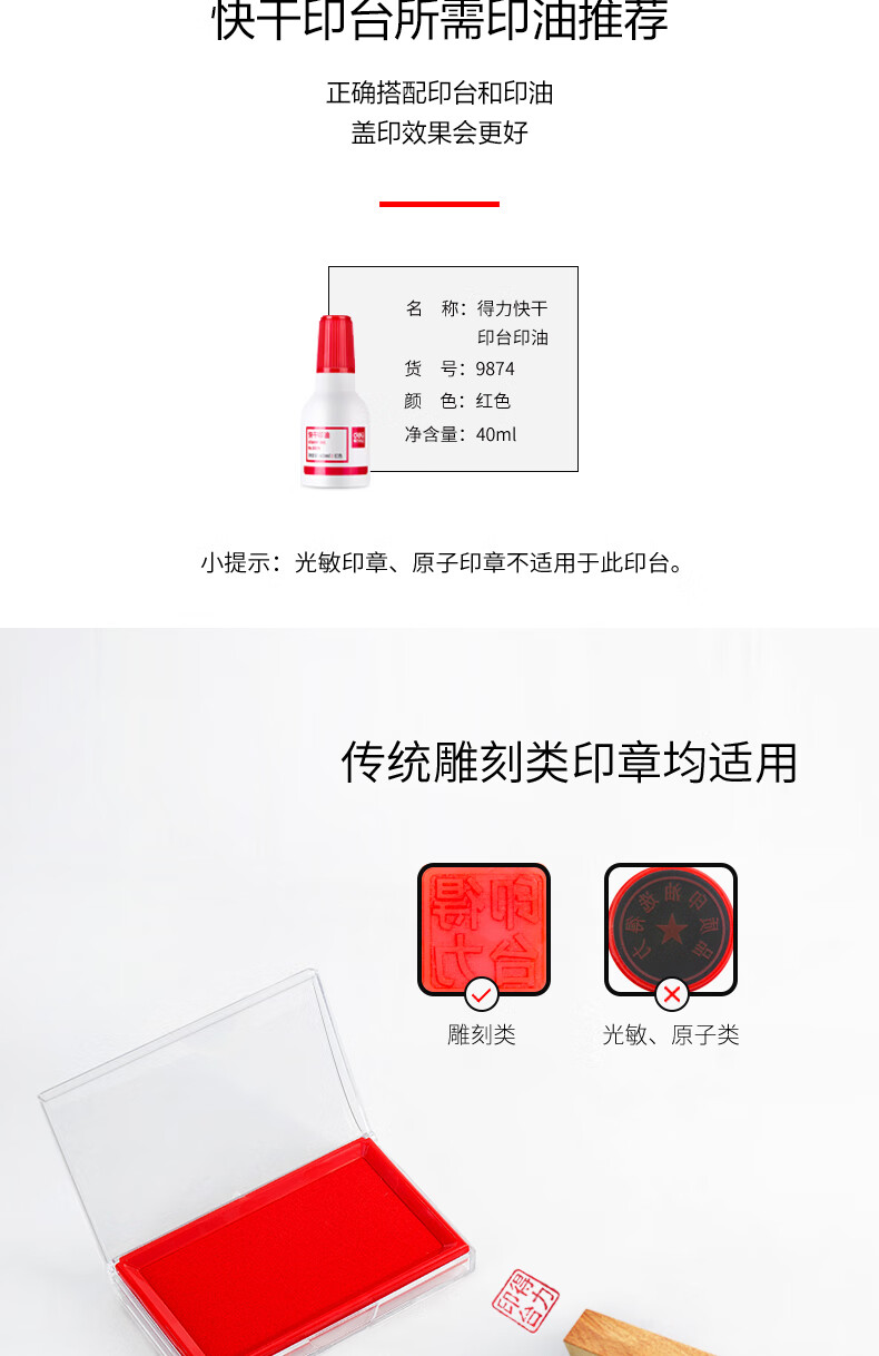 商品名稱:得力9864 印臺(tái) 137*88mm透明外殼方形快干印臺(tái)印泥 辦公用品