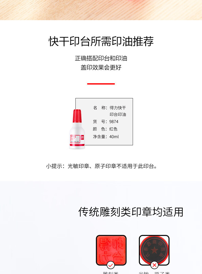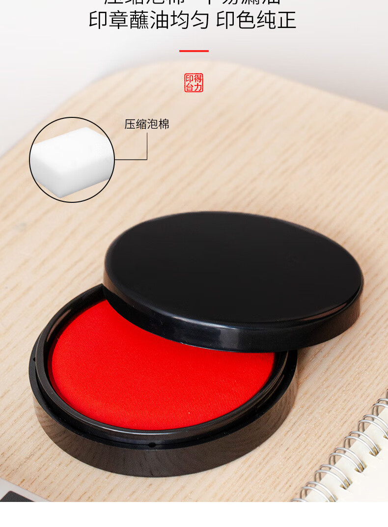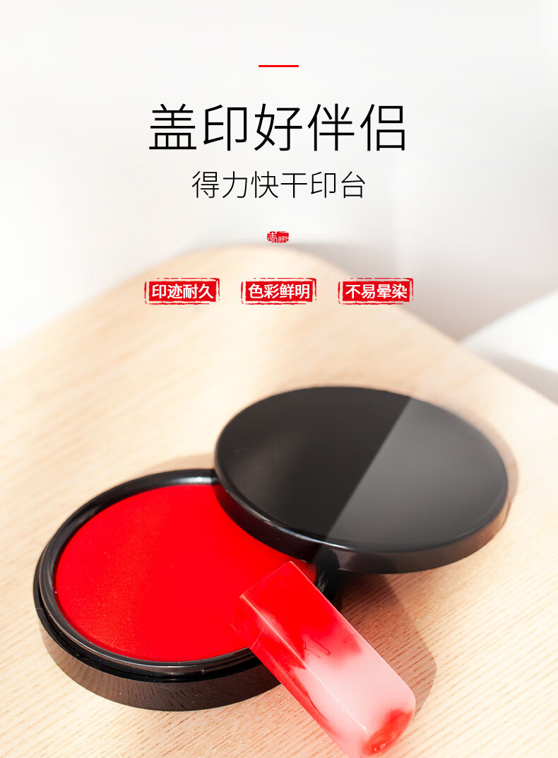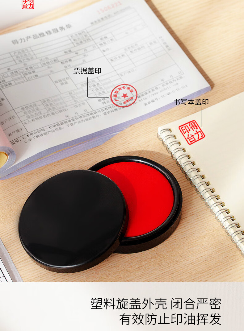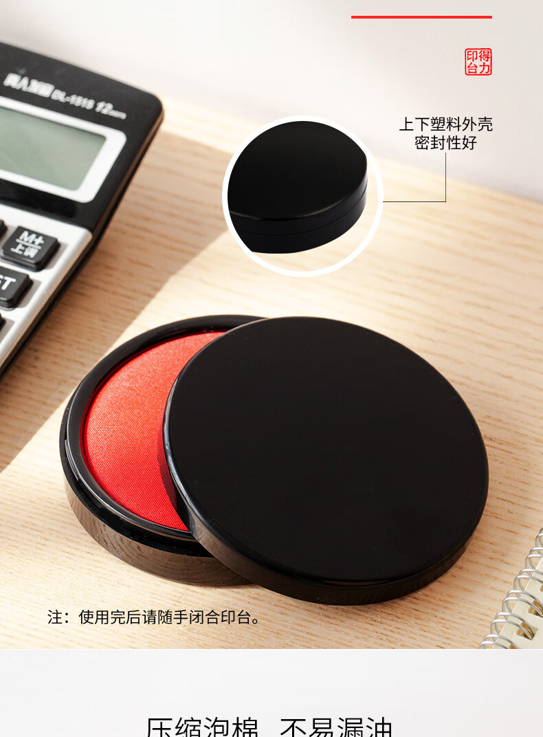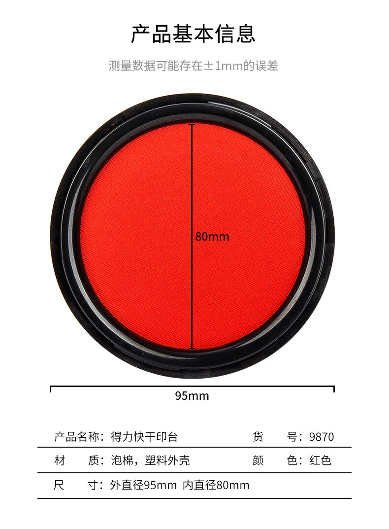 商品名稱:得力9870 印臺 φ95mm圓形塑殼快干印臺印泥 財務(wù)辦公用品 紅色(新老混發(fā))