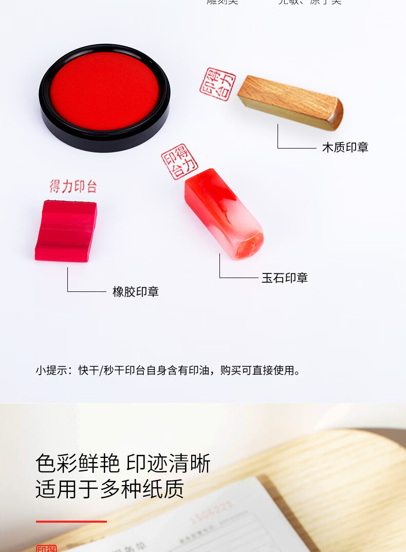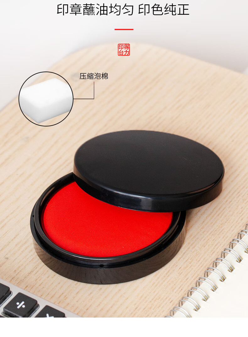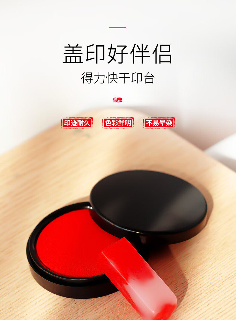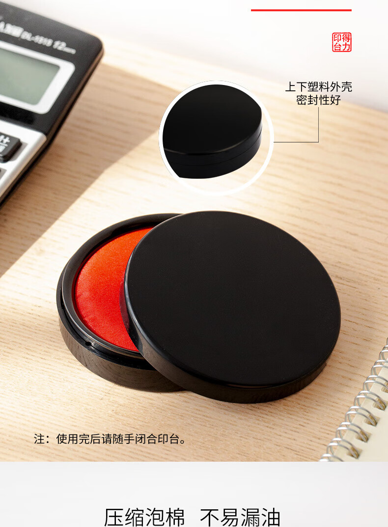 商品名稱:得力9869 印臺(tái) φ84mm圓形塑殼快干印臺(tái)印泥 財(cái)務(wù)辦公用品 紅色(新老包裝混發(fā))