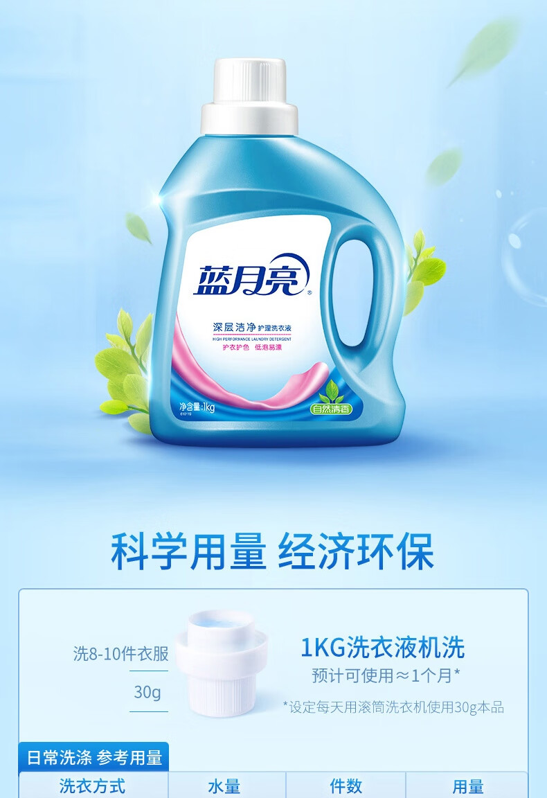 商品名稱:藍(lán)月亮 深層潔凈護(hù)理洗衣液(自然清香)1kg/瓶