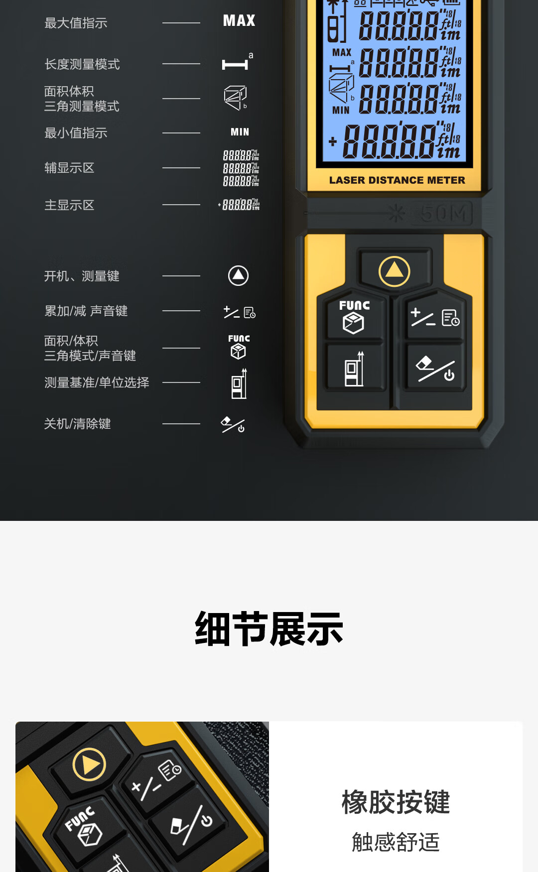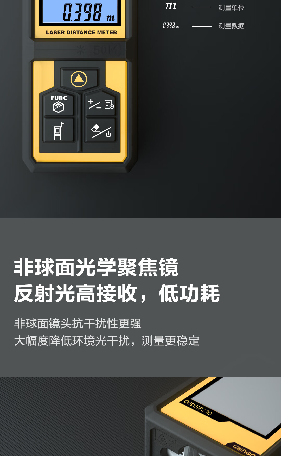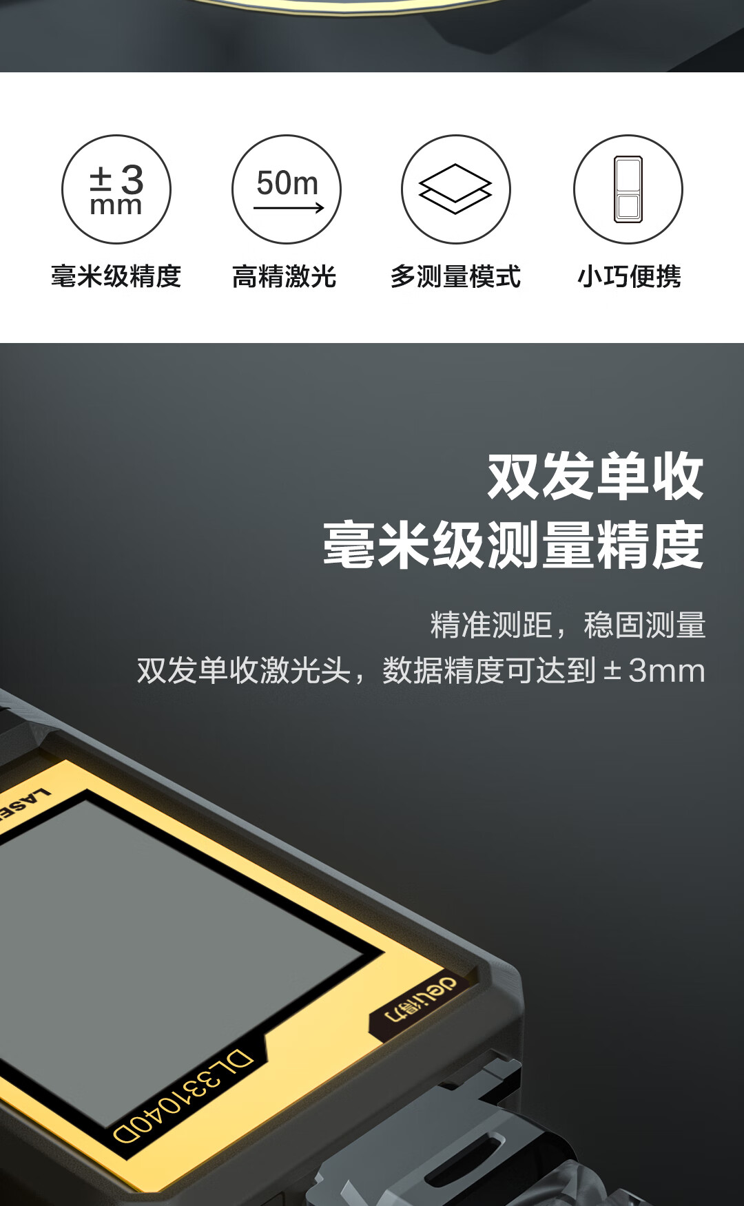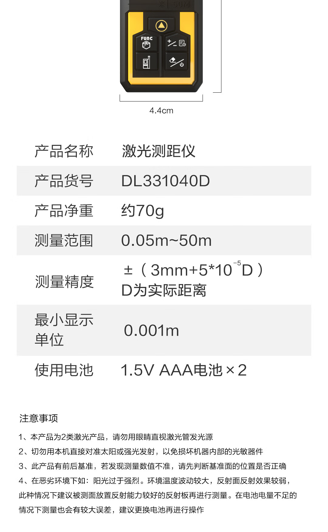 商品名稱:得力DL331040D 測(cè)距儀 手持式激光高精度電子尺紅外量房?jī)x50米量程毫米級(jí)精度
