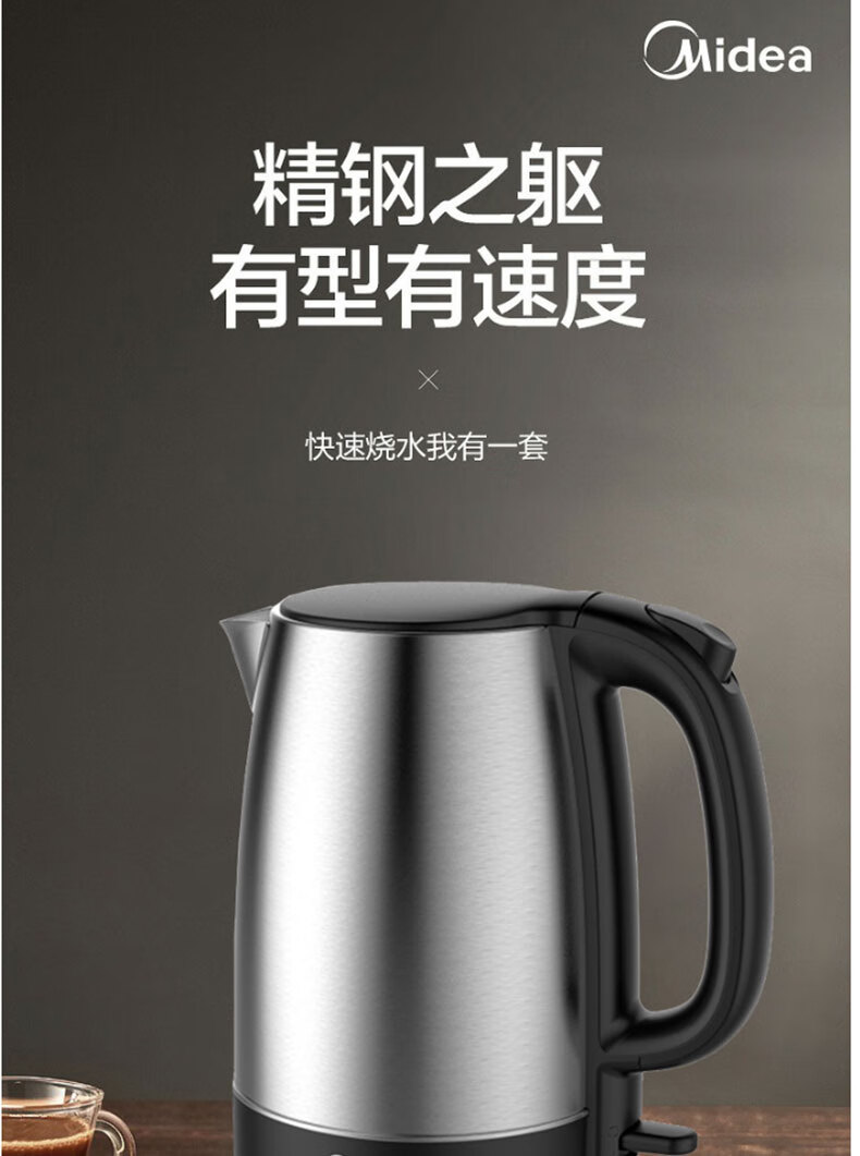 商品名稱(chēng):美的SH17C105 電熱水壺 燒水壺家用304不銹鋼大容量辦公室宿舍自動(dòng)斷電開(kāi)水壺 1.7L