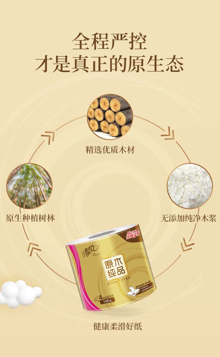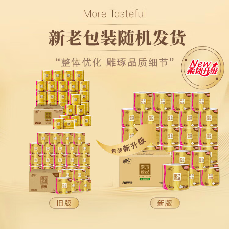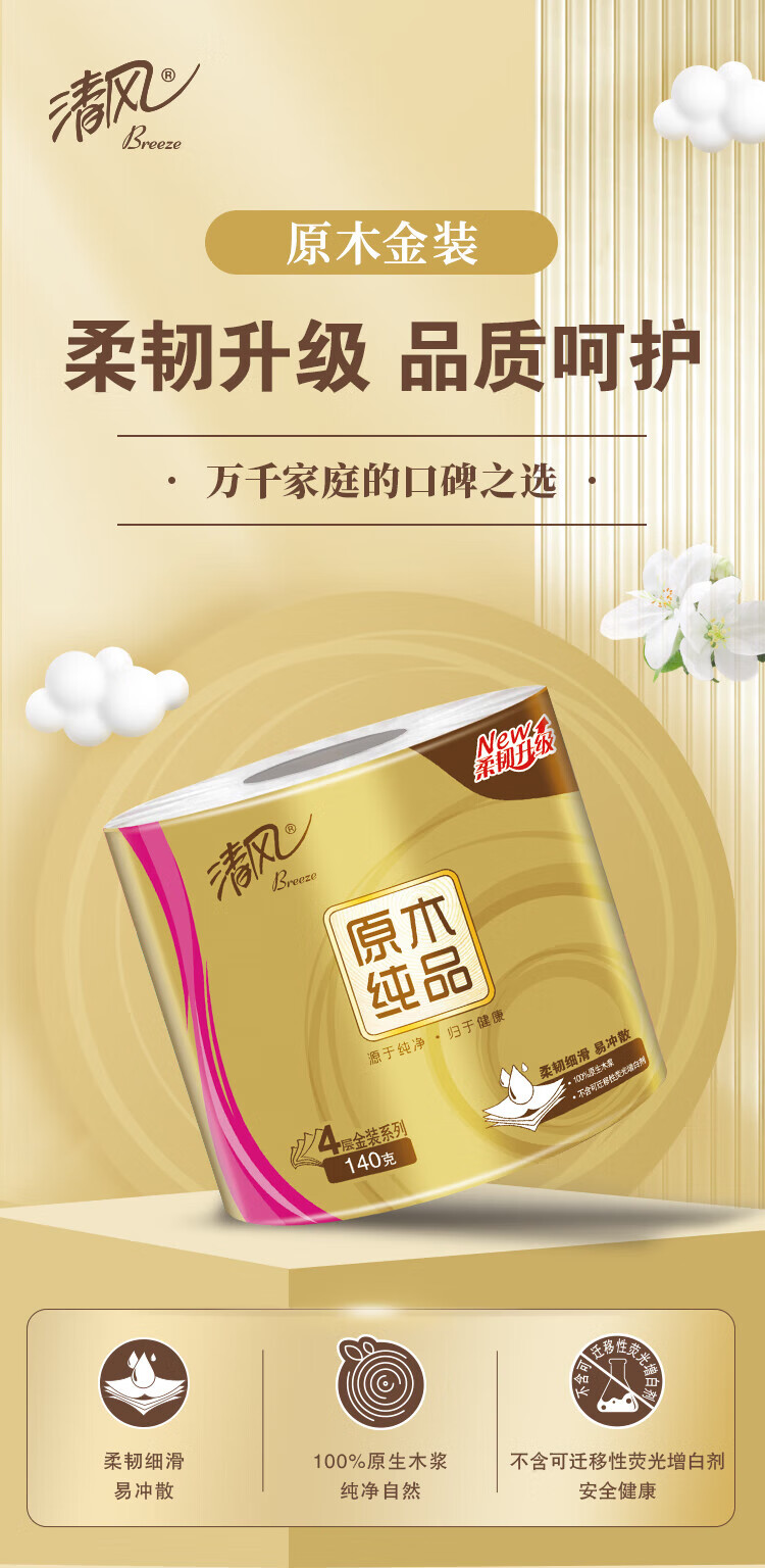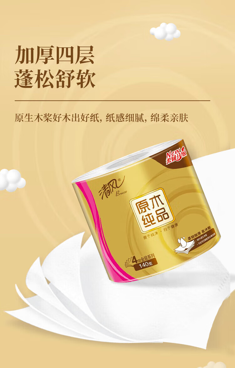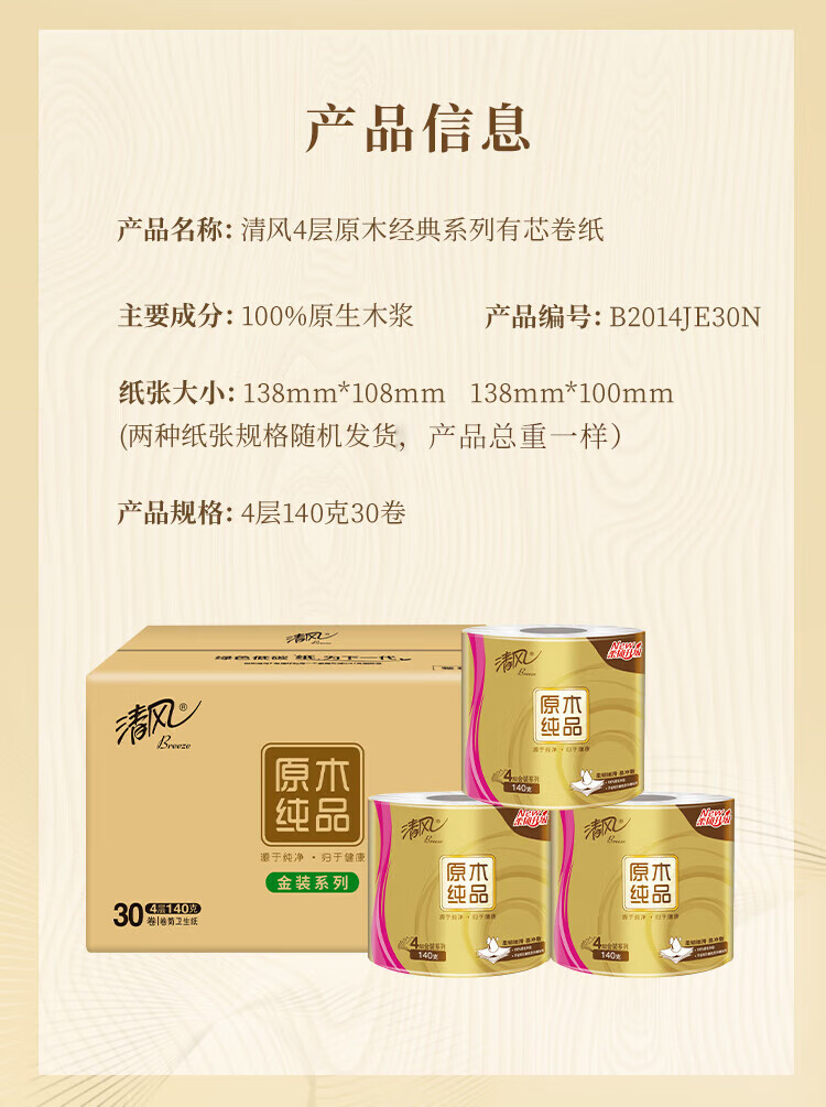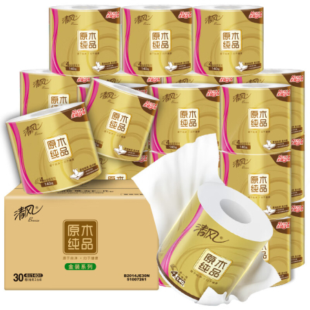 商品名稱:清風 有芯卷紙 原木金裝 4層加厚140克*30卷 衛(wèi)生紙卷筒紙紙巾 整箱
