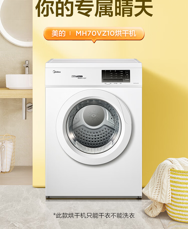 商品名稱:美的MH70VZ10 烘干機(jī) 直排式干衣機(jī) 7公斤健康烘干 祛味除螨 纖維立體烘干 高溫除螨