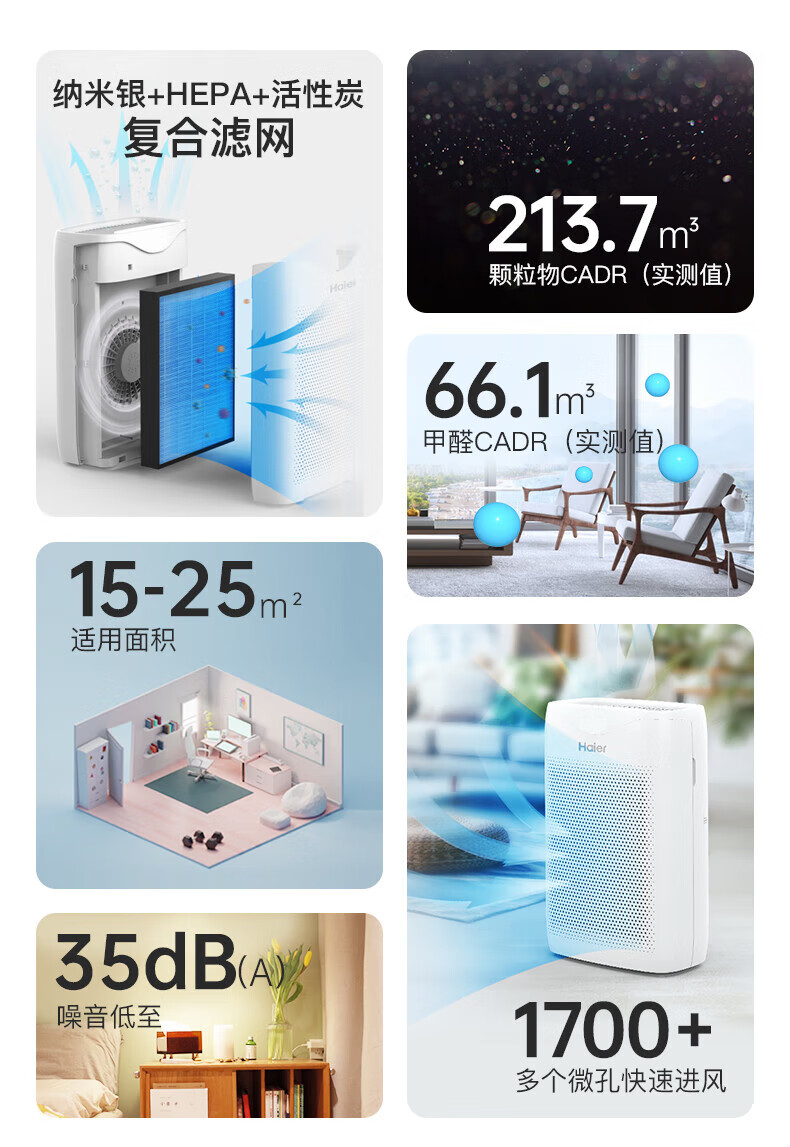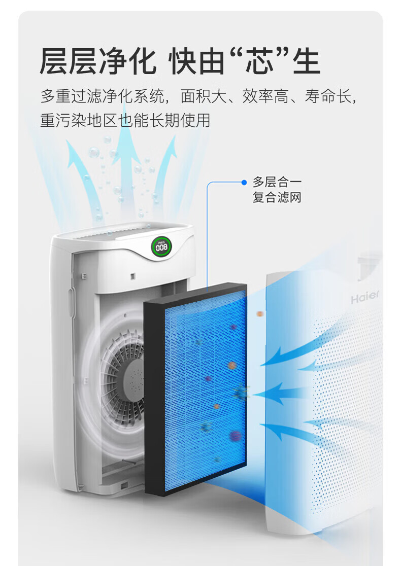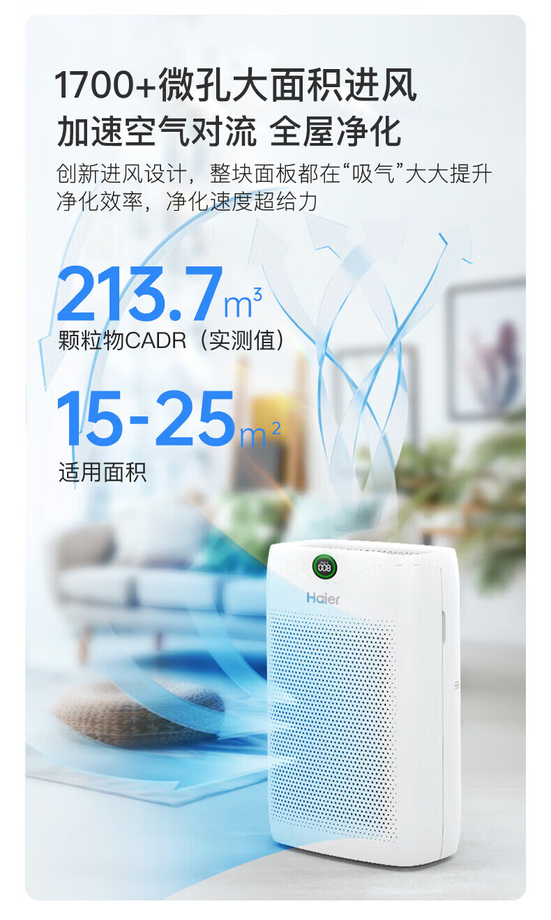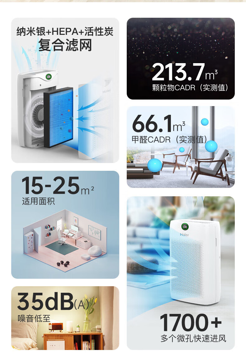 商品名稱:海爾KJ200F-M900A 空氣凈化器 除甲醛除霧霾除煙味母嬰家用除灰塵殺菌