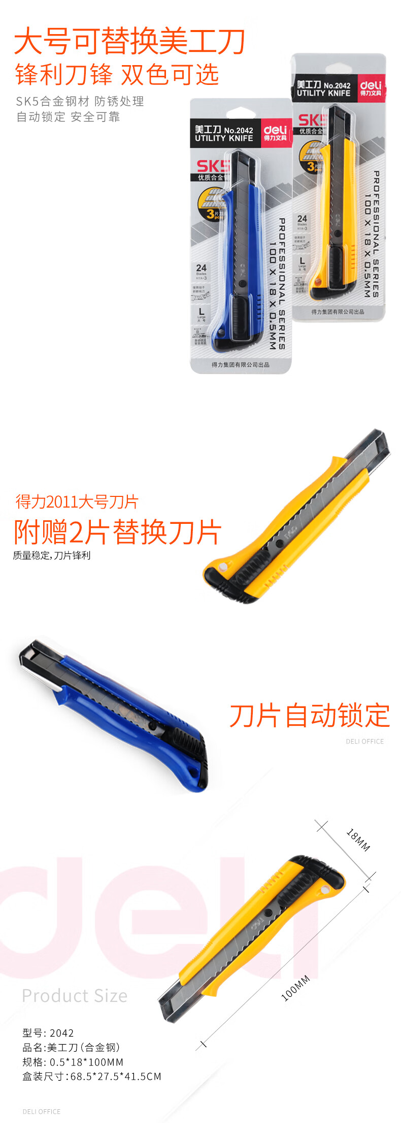 商品名稱(chēng):得力2042 美工刀 小號(hào)金屬美工刀裁紙刀 顏色隨機(jī)