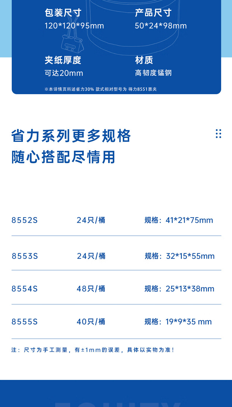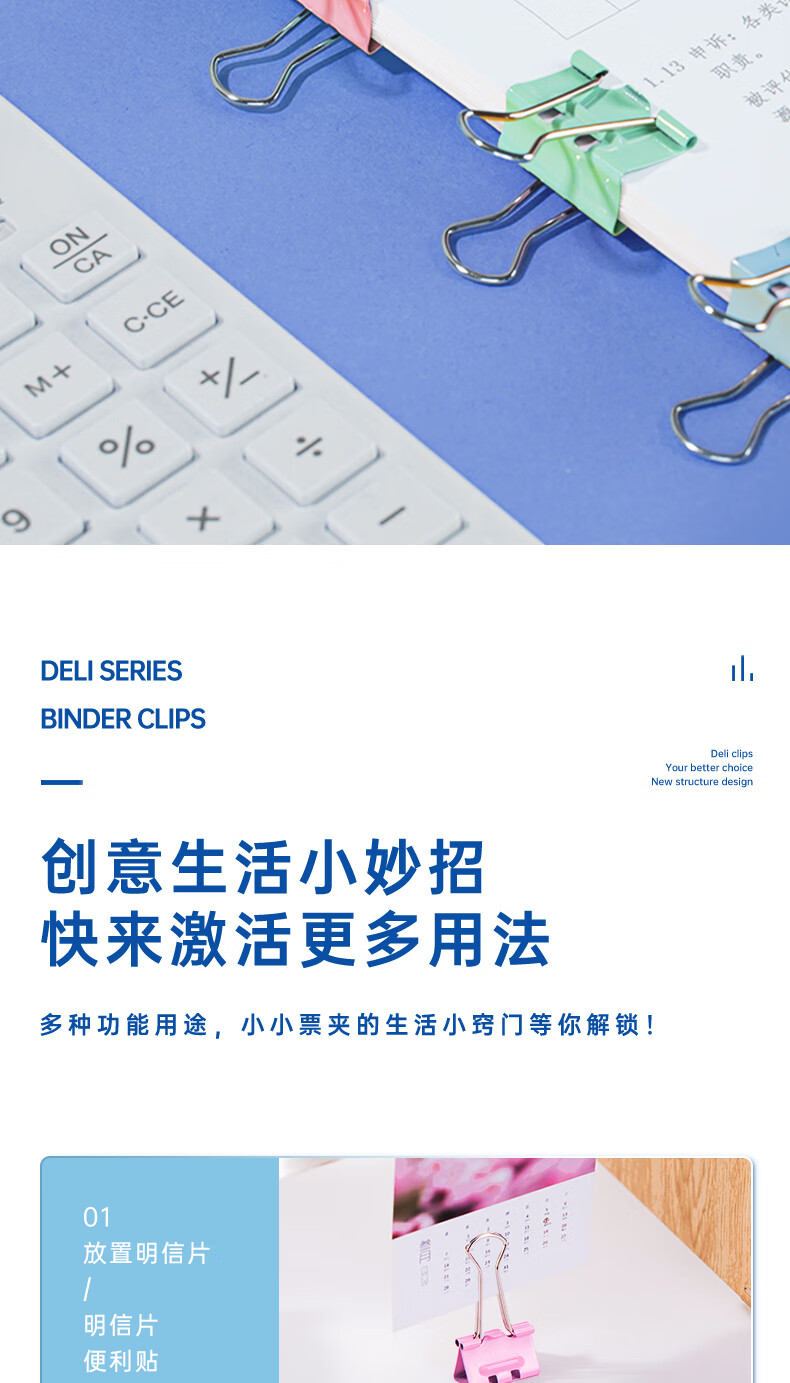 商品名稱:得力8551S 省力長尾夾 1#50mm超大號金屬票夾燕尾夾票據(jù)文件夾子 辦公用品 12只/筒