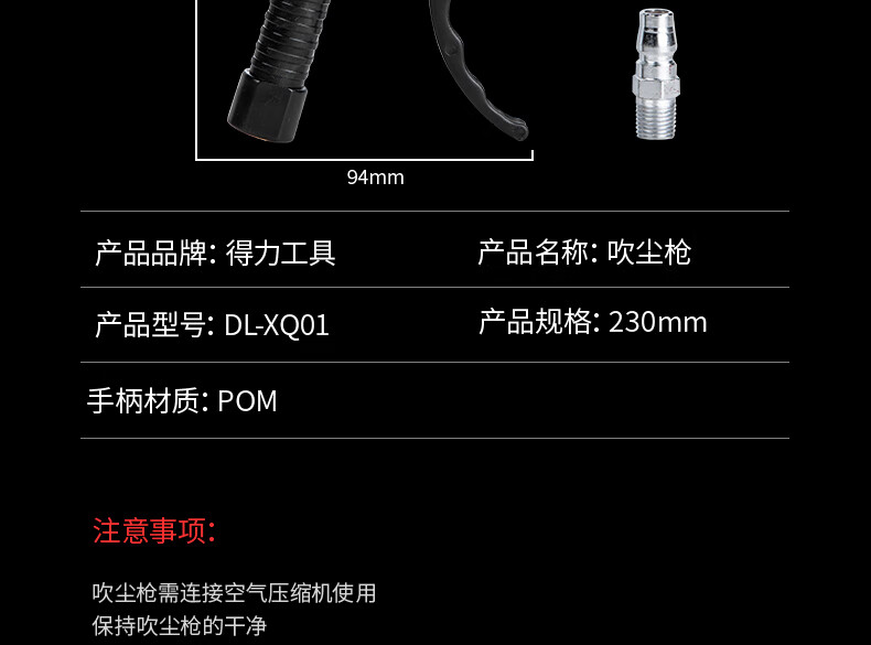 商品名稱:得力DL-XQ01 吹塵槍 230mm高壓空氣去污吹氣吹風槍除塵吹塵槍350L/min