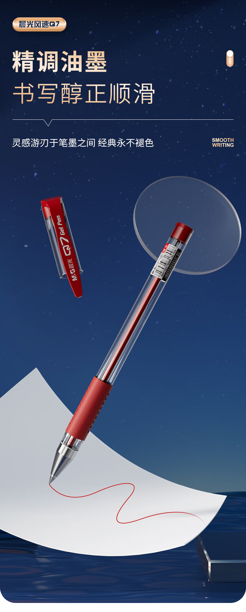 商品名稱:晨光 經(jīng)典風(fēng)速Q(mào)7 中性筆 0.5mm子彈頭簽字筆 學(xué)生/辦公用筆 拔蓋水筆 12支/盒