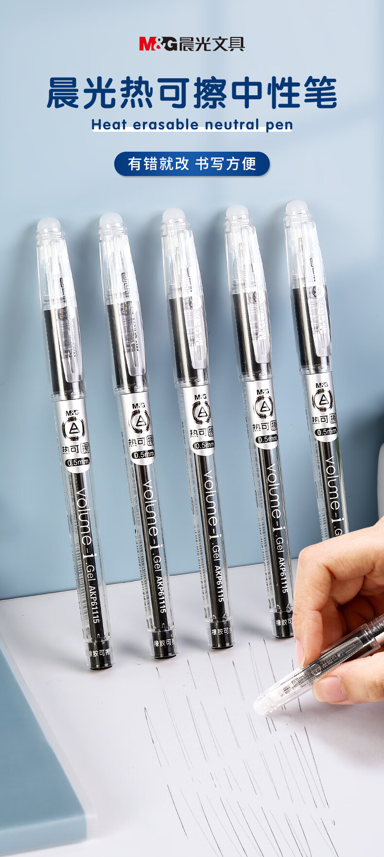 商品名稱:晨光AKP61115A 熱可擦中性筆 0.5mm簡約拔蓋子彈頭黑色水筆簽字筆 12支/盒
