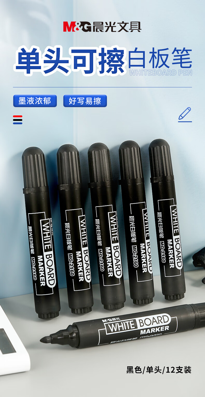 商品名稱:晨光MG2160 可擦白板筆 單頭辦公會(huì)議筆 易擦大容量白板筆 12支/盒