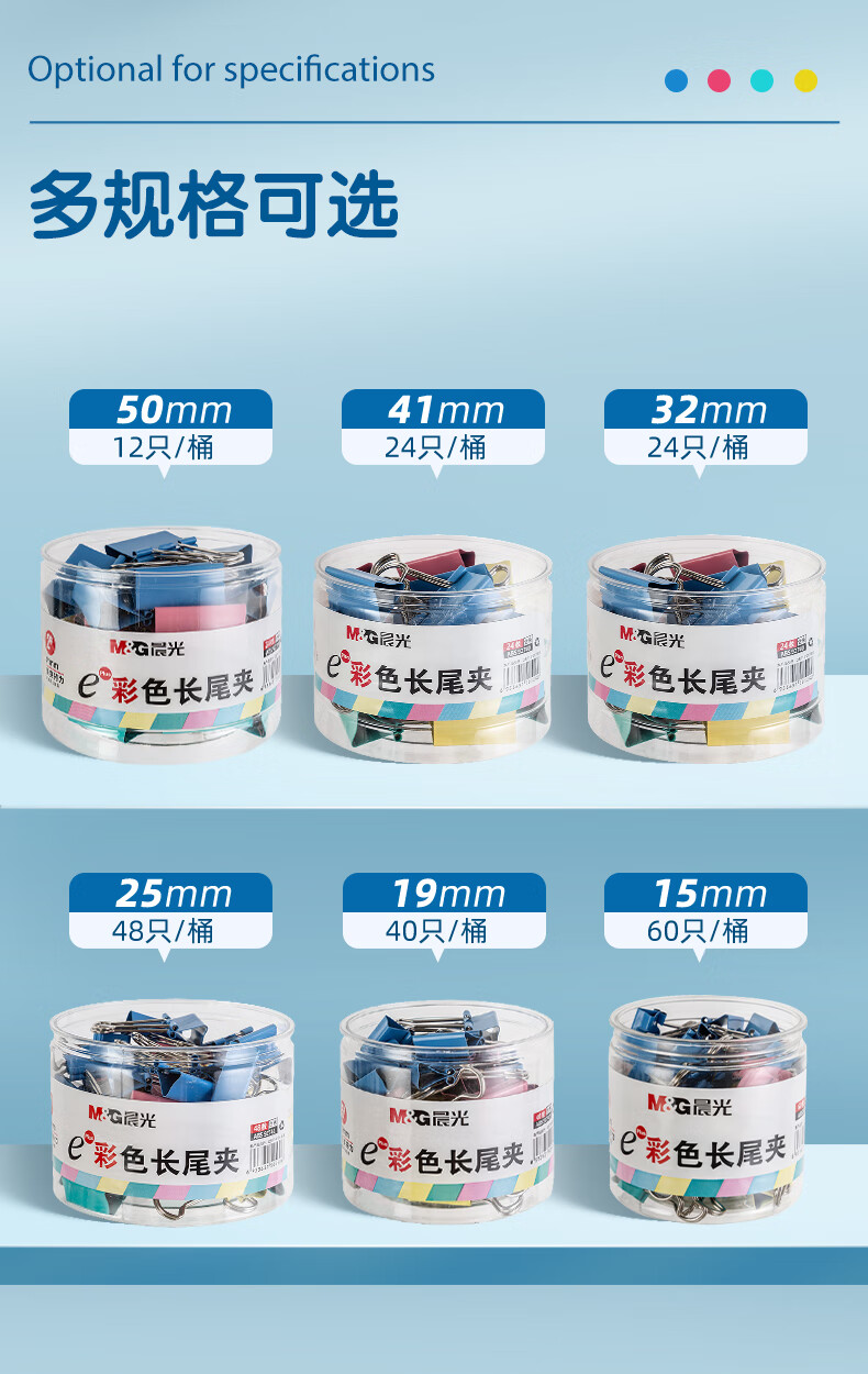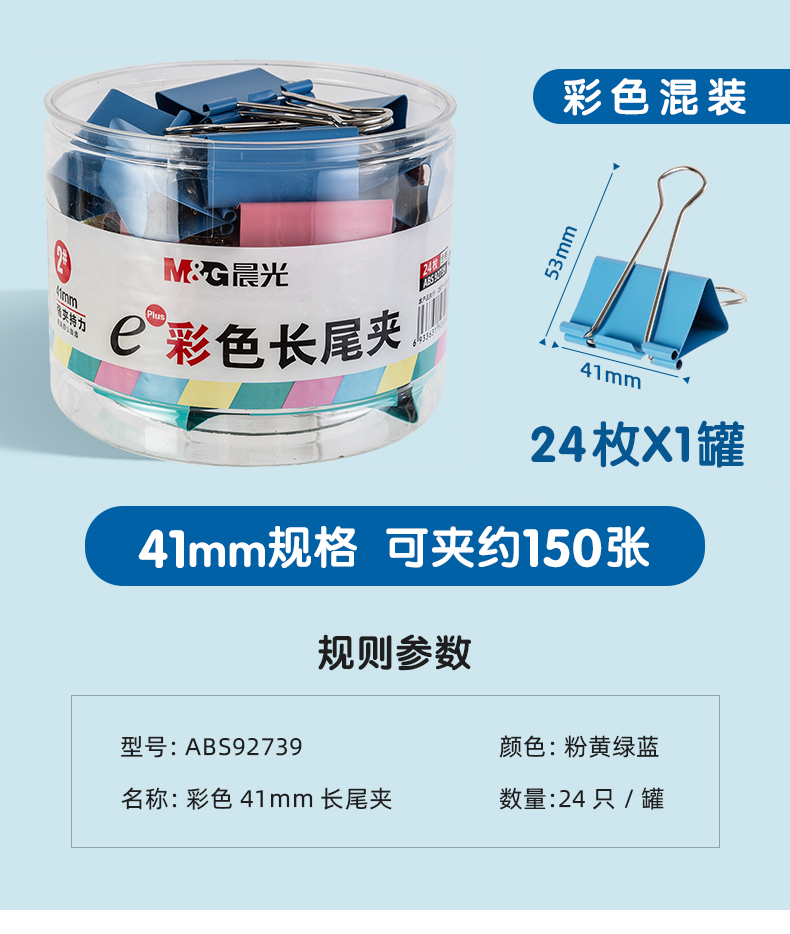 商品名稱:晨光ABS92739 彩色長尾夾 2#41mm大號金屬票據(jù)夾 Eplus系列辦公燕尾夾 24只/罐