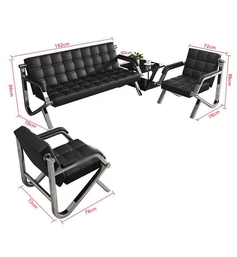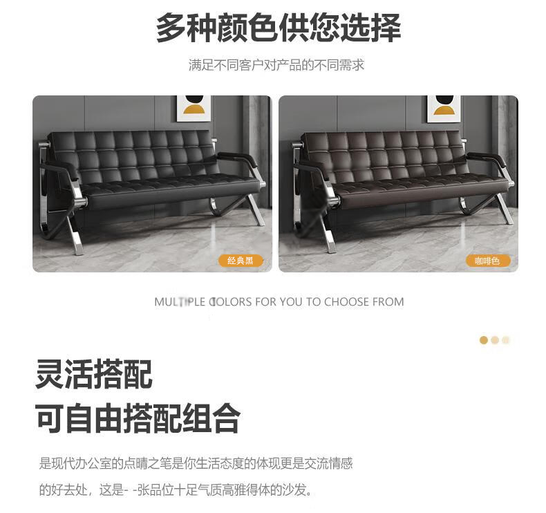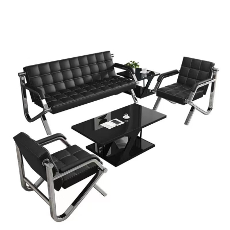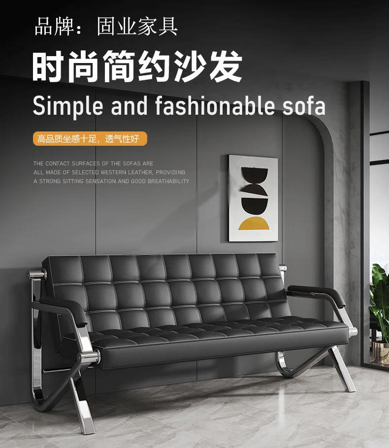 商品名稱:固業(yè)家具 沙發(fā)茶幾組合 簡約接待室會(huì)客公共區(qū)小型三人位不銹鋼沙 1+1+3黑色