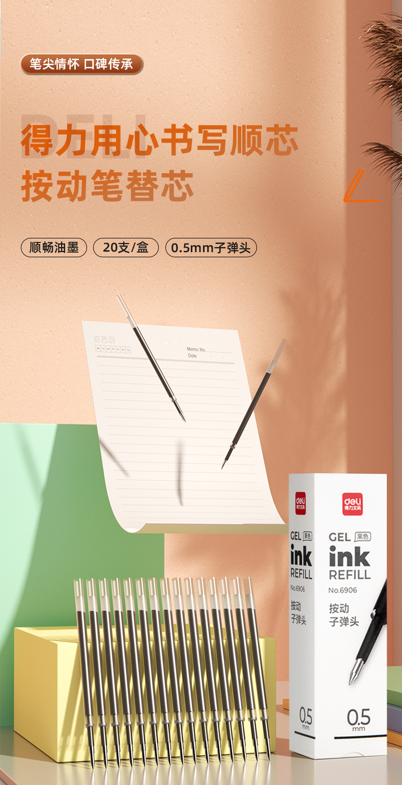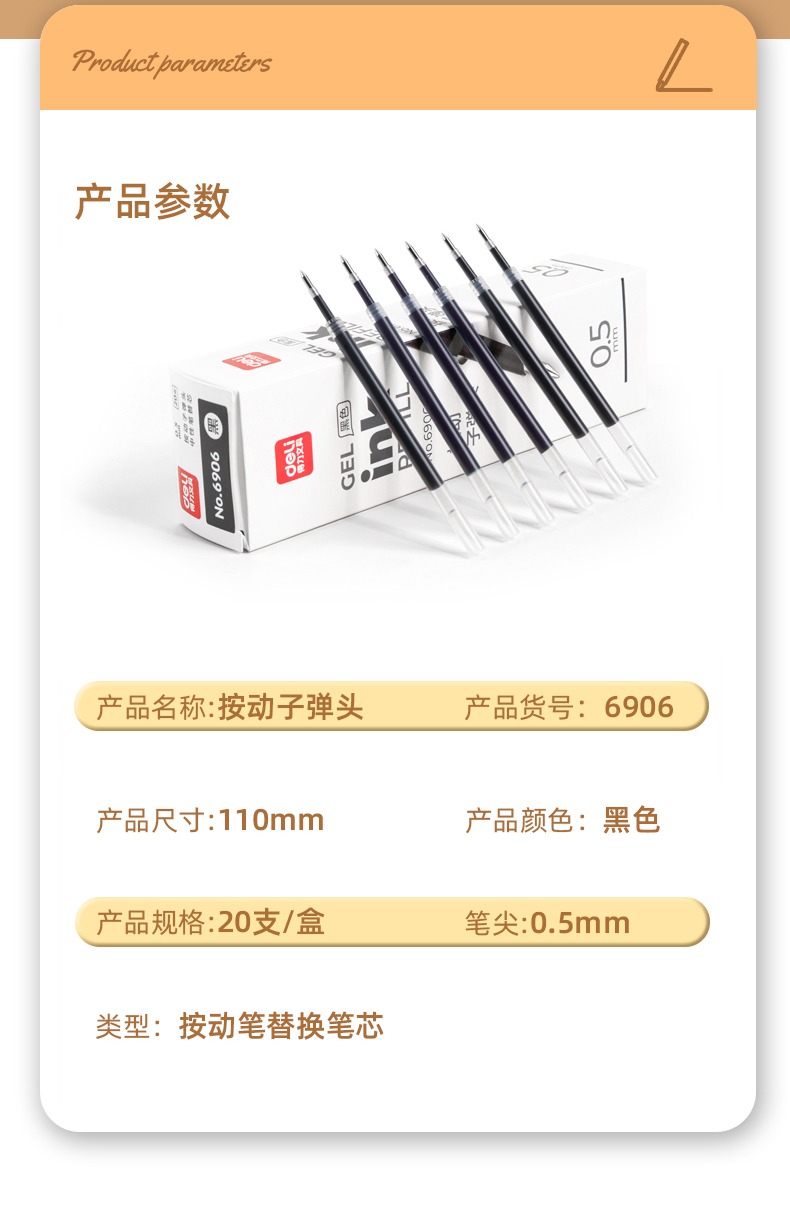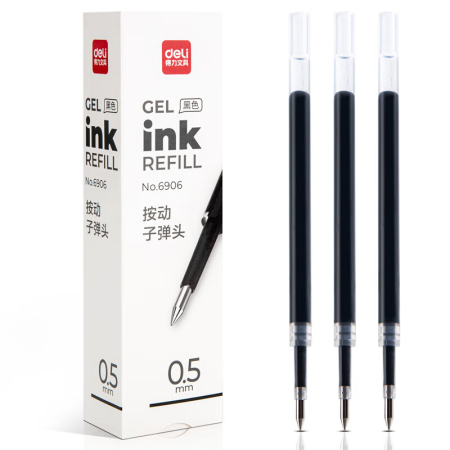 商品名稱:得力6906 按動(dòng)中性筆芯 學(xué)生辦公水筆簽字筆替芯 0.5mm子彈頭 20支/盒