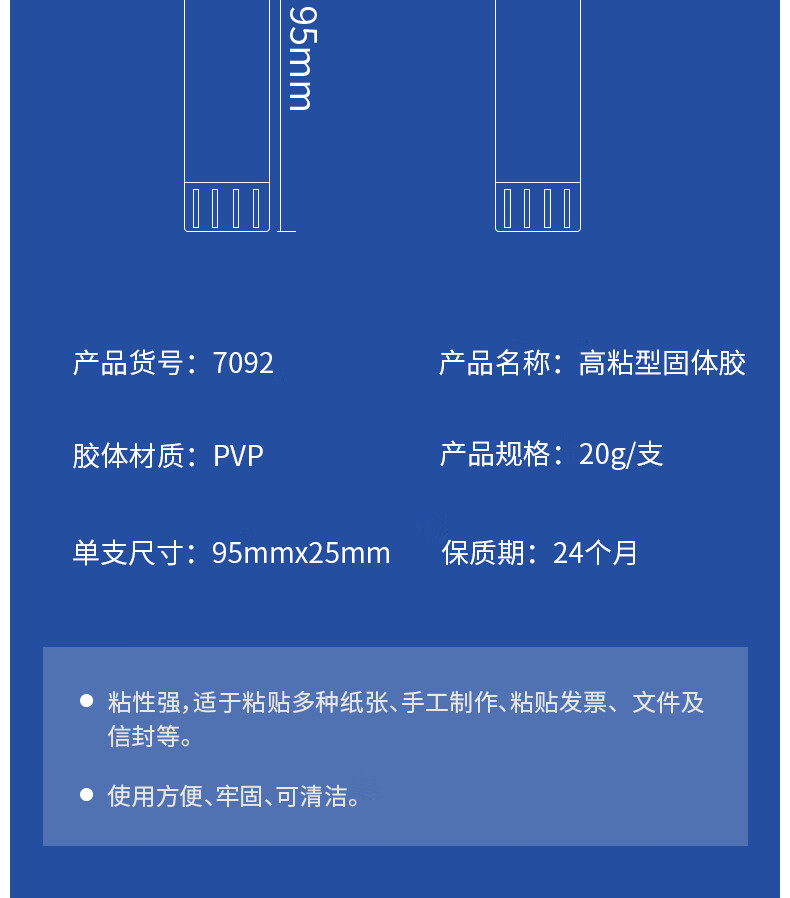 商品名稱:得力7092 固體膠水 20g高粘度PVP無甲醛快干耐用膠棒 單支裝 辦公用品