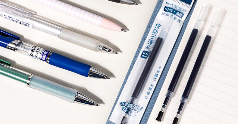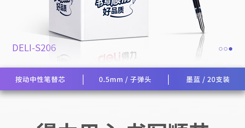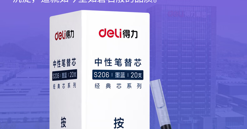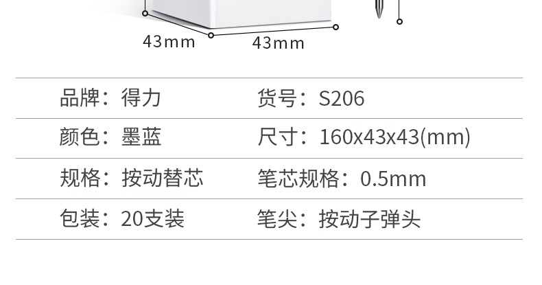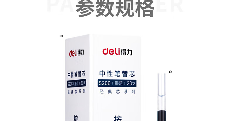 商品名稱:得力S206 按動中性筆替芯 學(xué)生辦公簽字筆水筆筆芯 0.5mm子彈頭 20支/盒