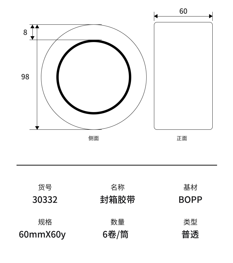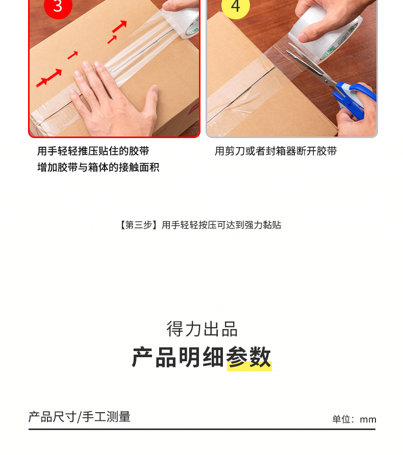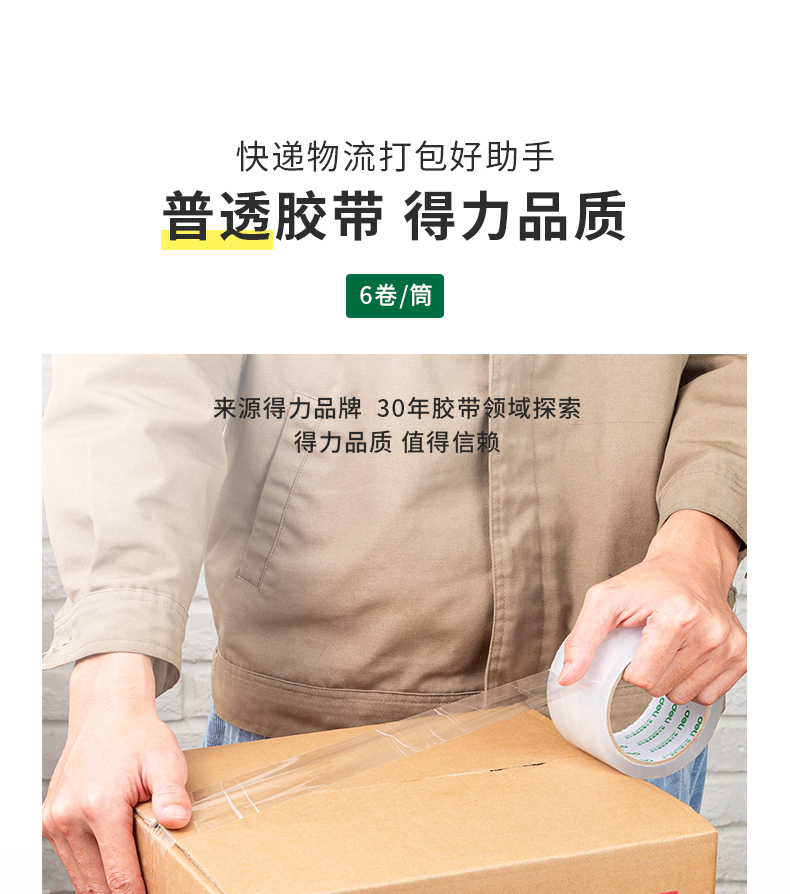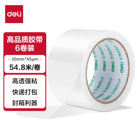 商品名稱:得力30332 高品質(zhì)透明封箱膠帶/打包膠帶 60mm*60y 6卷/筒 辦公用品