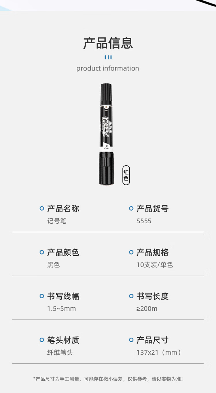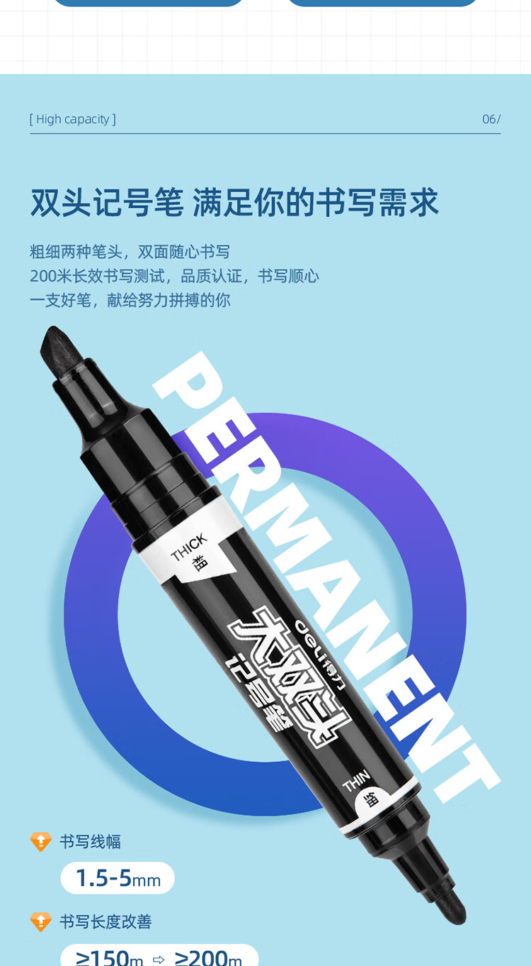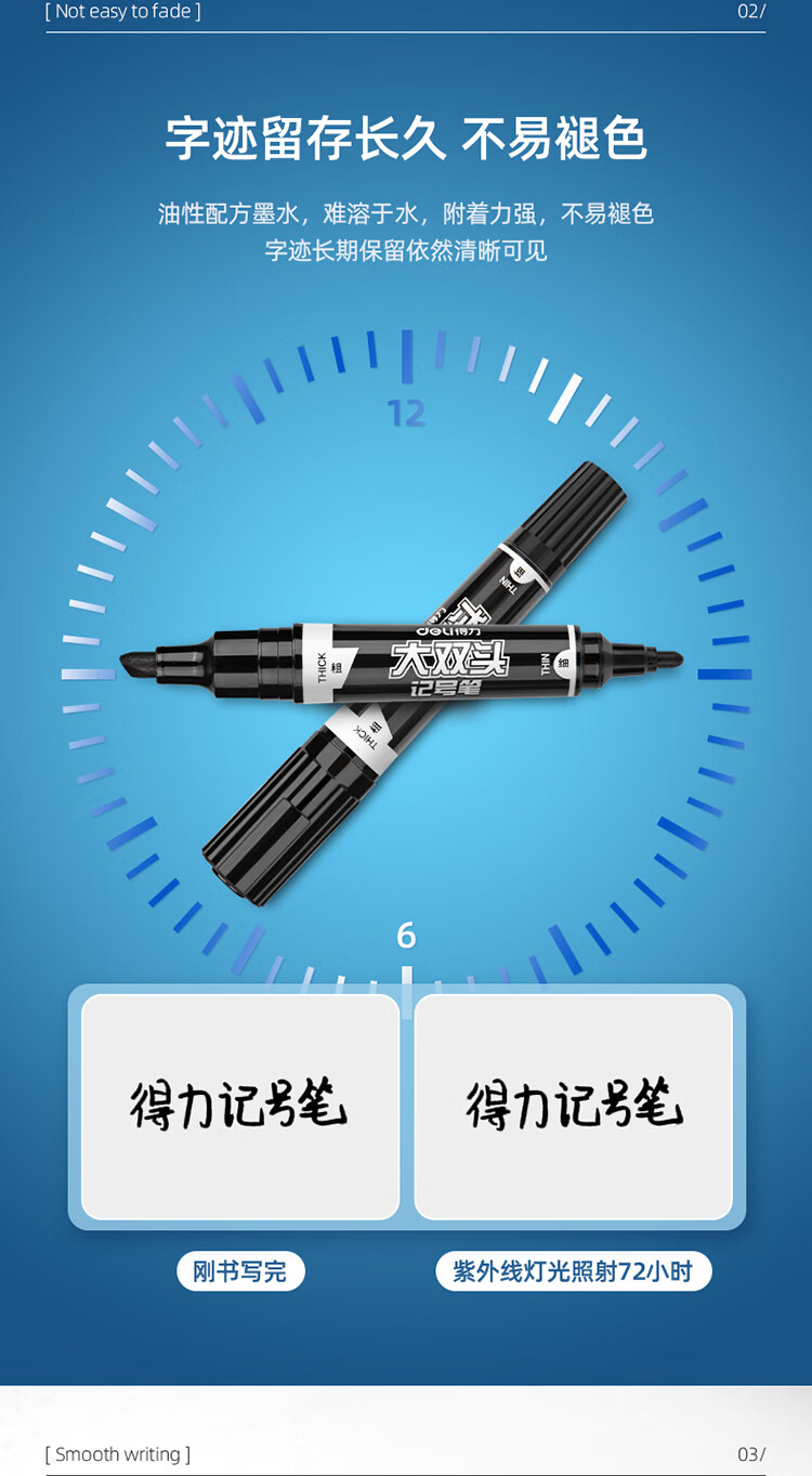 商品名稱(chēng):得力S555 大雙頭粗頭記號(hào)筆 多用物流辦公文具教學(xué)會(huì)議筆馬克筆 10支/盒