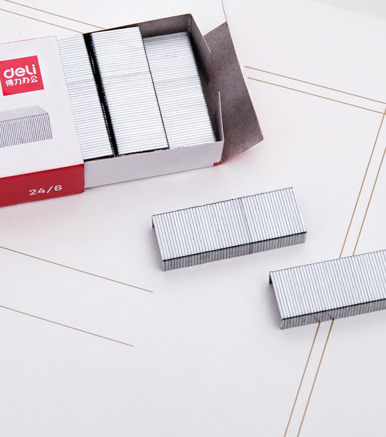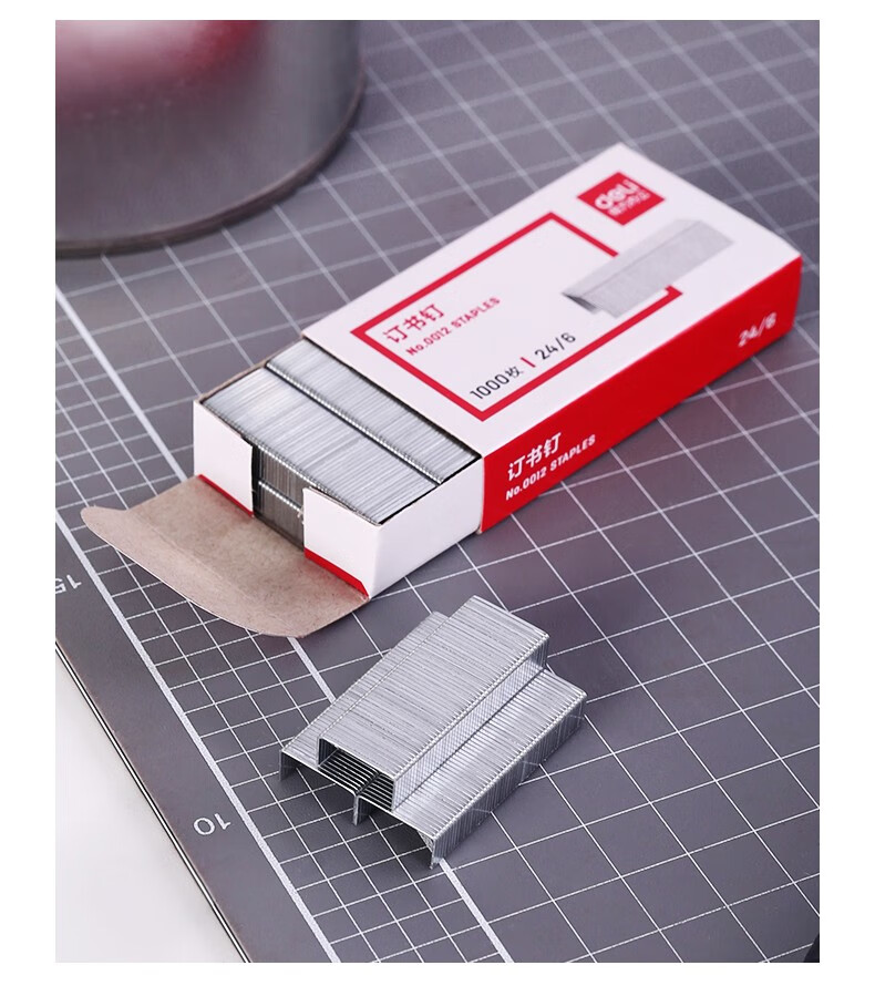 商品名稱:得力0012 高強(qiáng)度訂書釘 12#24/6訂書針 可訂25頁 1000枚/盒