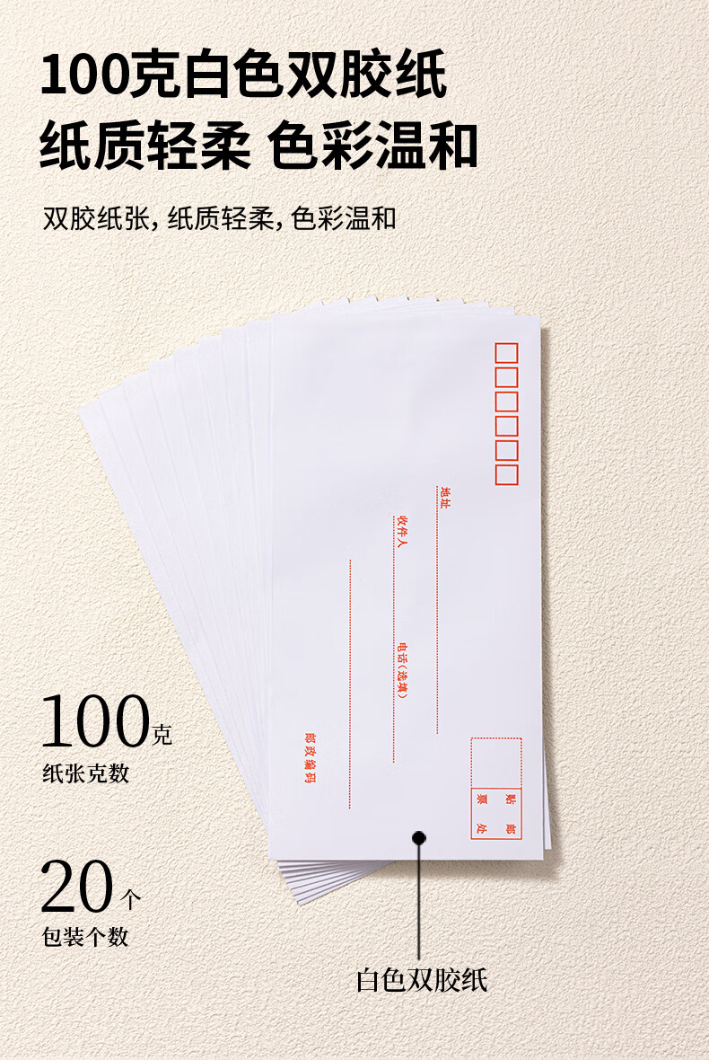 商品名稱:得力3422 白色信封 5號(hào)郵局標(biāo)準(zhǔn)信封220*110mm 20張/包
