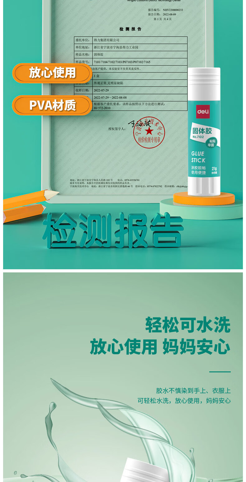 商品名稱:得力7102 固體膠水 21g高粘度PVA膠棒 速干耐用可水洗膠棒 單支裝