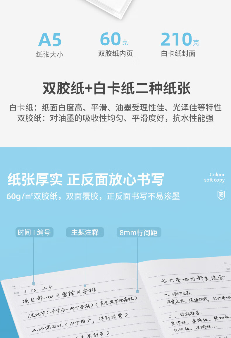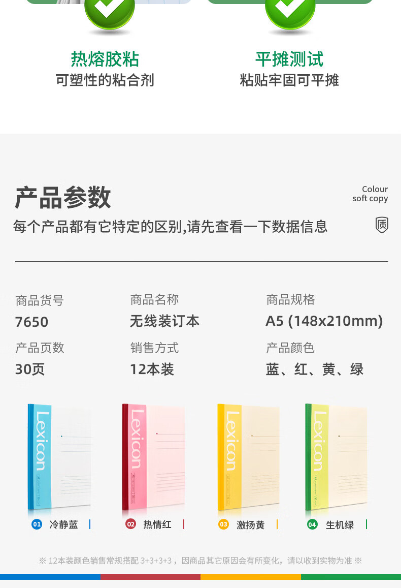 商品名稱:得力7650 軟抄本 A5/30張無(wú)線裝訂記事本工作筆記本子 12本/包