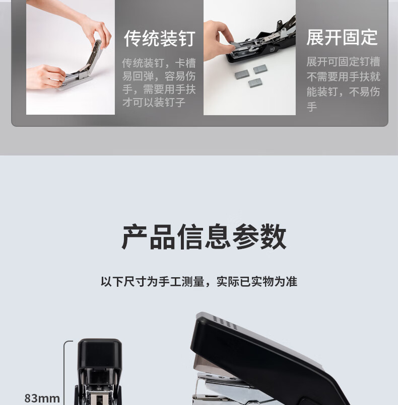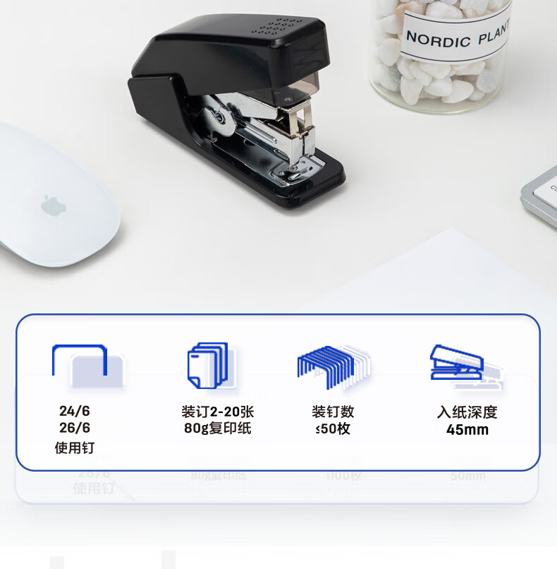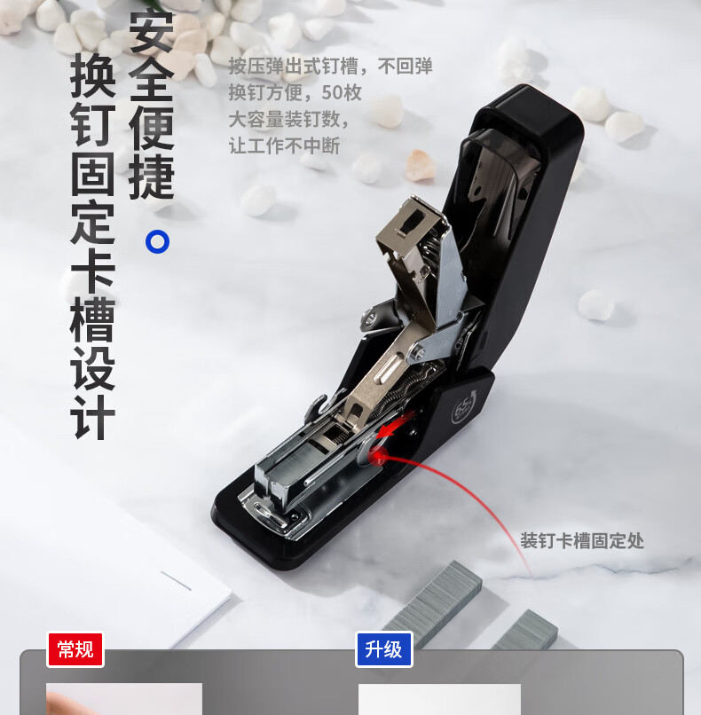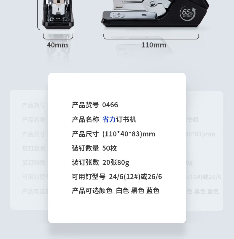 商品名稱:得力0466 省力訂書機(jī) 適配12#訂書釘 黑色 單位:個(gè)