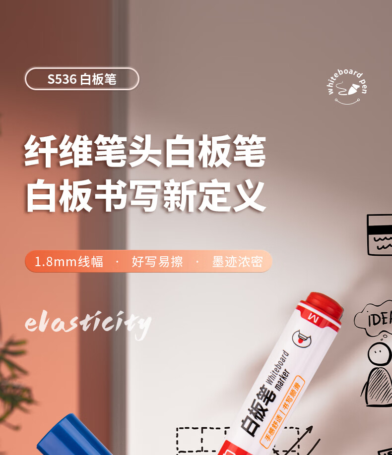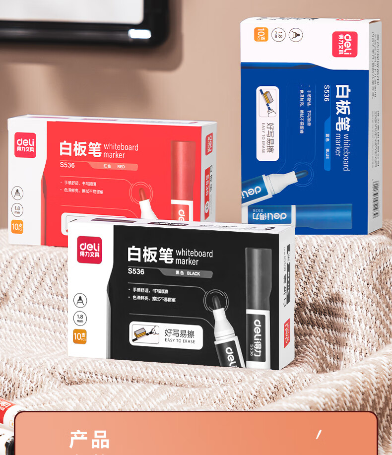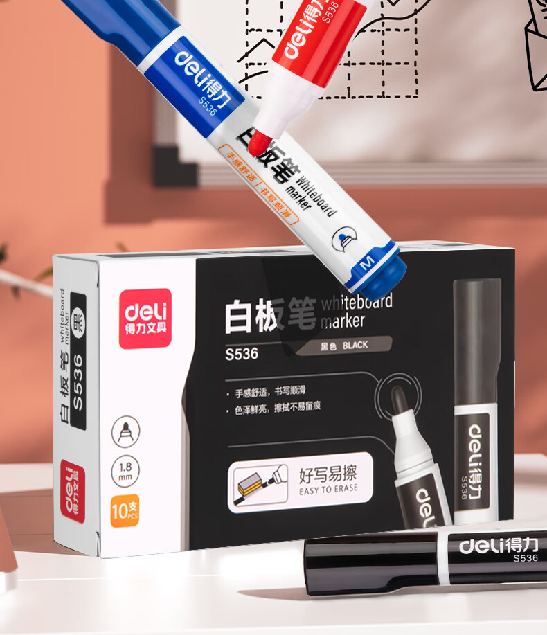 商品名稱:得力S536 白板筆 可擦易擦?xí)鴮?xiě)順滑 10支/盒