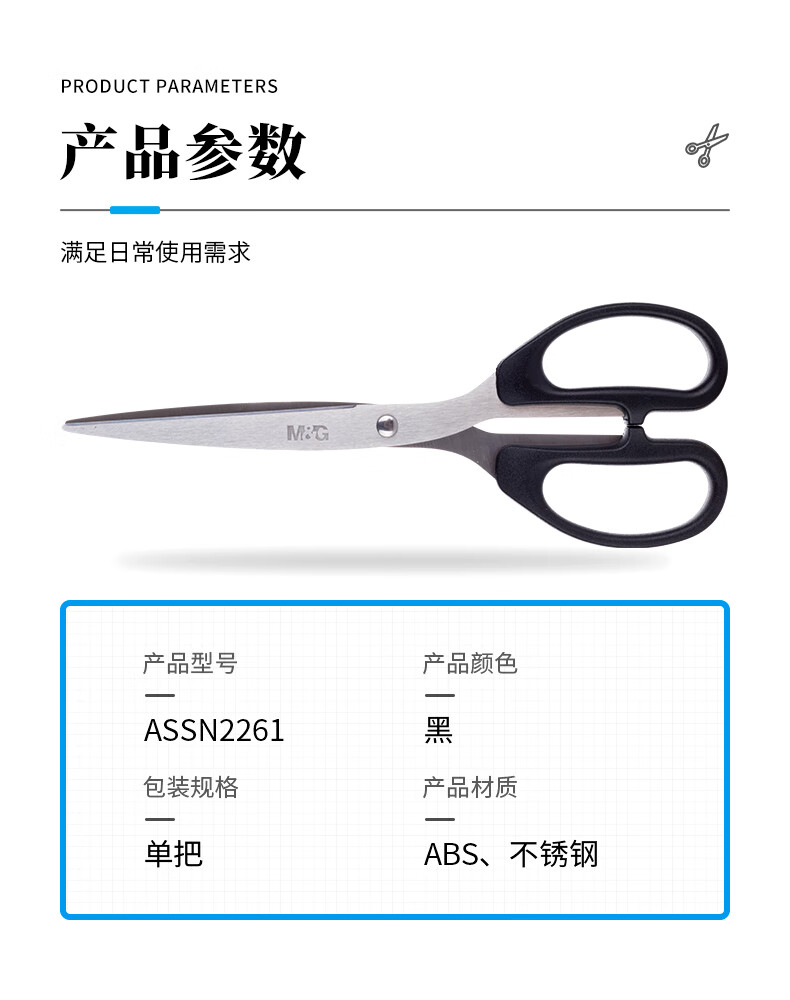 商品名稱(chēng):晨光ASSN2261 剪刀 210mm大號(hào)手工剪紙刀 辦公用品 黑色 單把裝