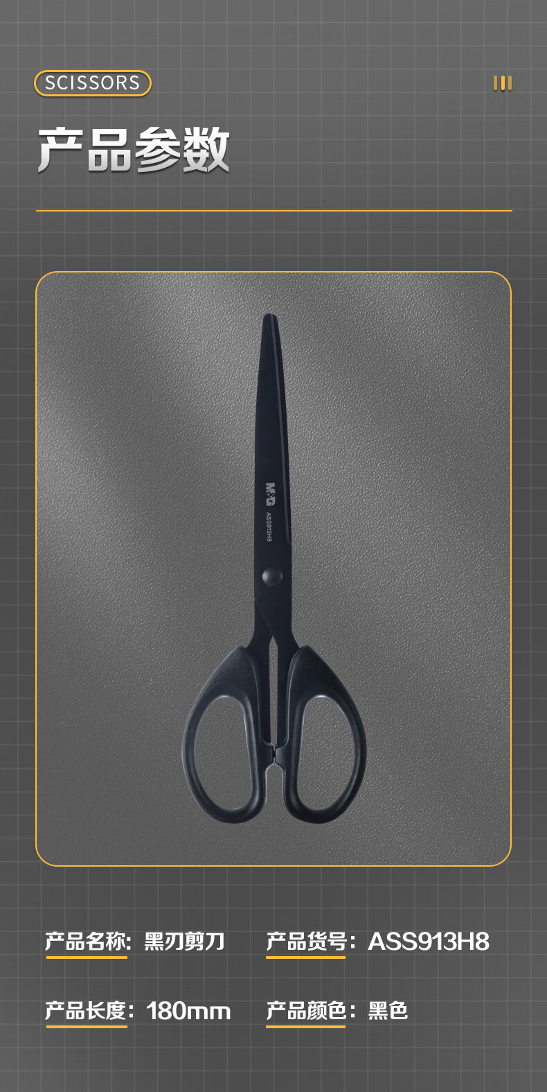 商品名稱:晨光ASS913H8 黑刃剪刀 180mm大號不銹鋼刀刃不易粘膠耐用剪刀 辦公用品 單把裝