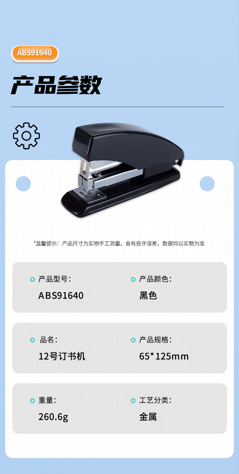 商品名稱:晨光ABS91640 訂書機 12#商務(wù)型省力型訂書器 辦公用品 黑色 單個裝