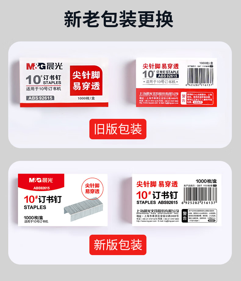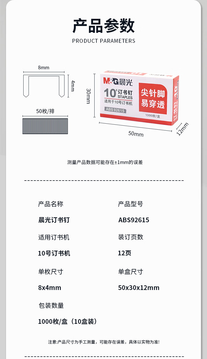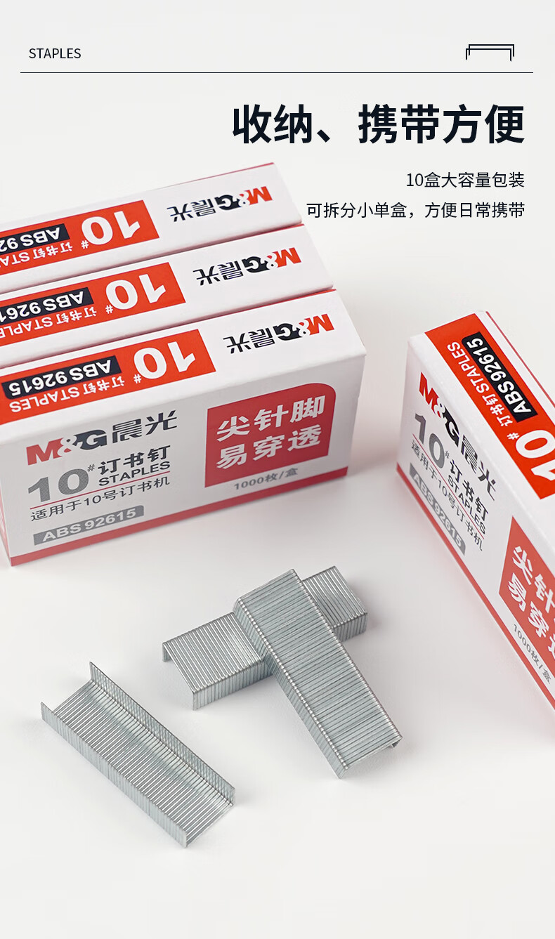 商品名稱:晨光ABS92615 訂書釘 10#易穿透訂書針 辦公用品 1000枚/盒 10盒裝