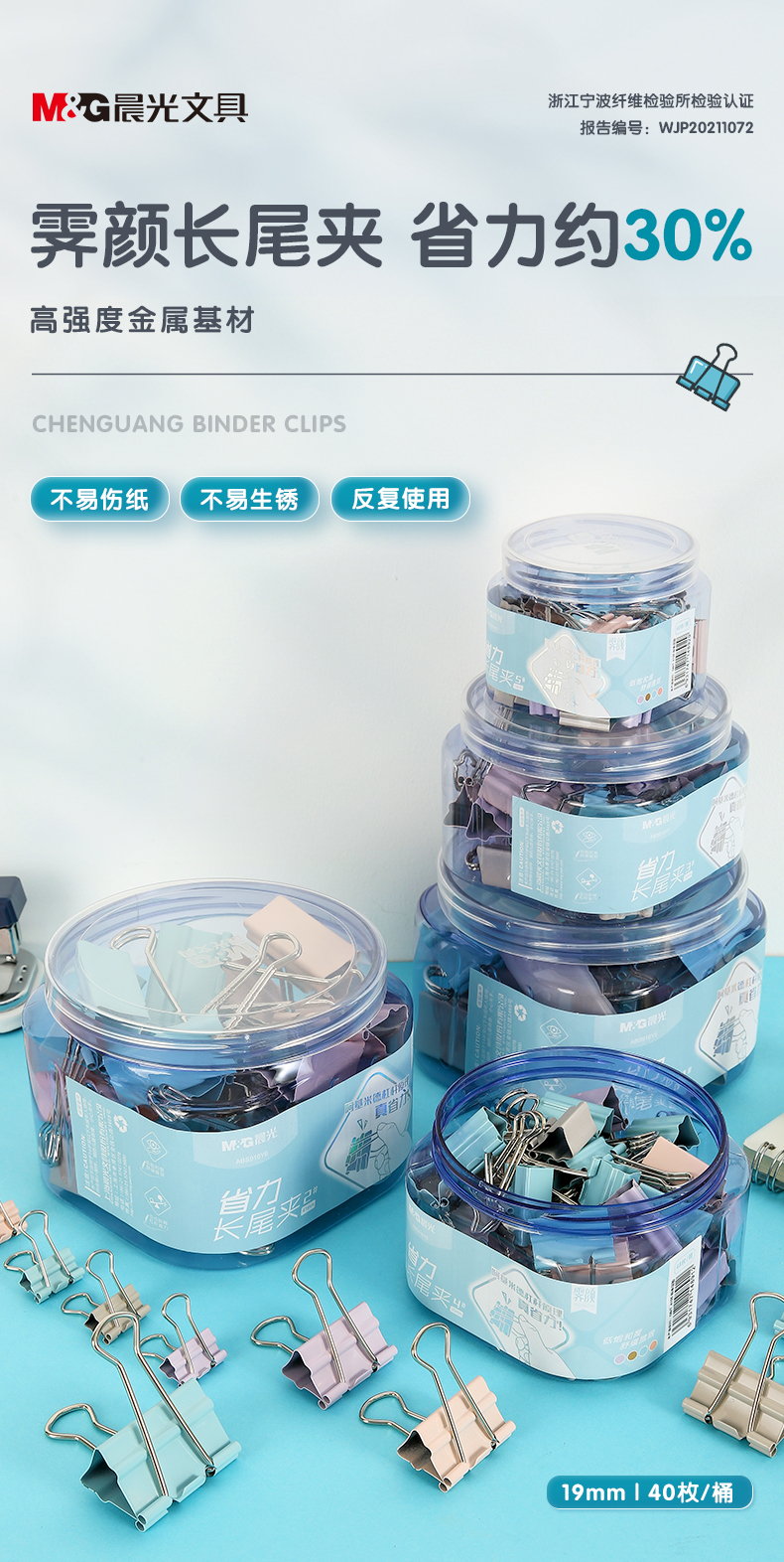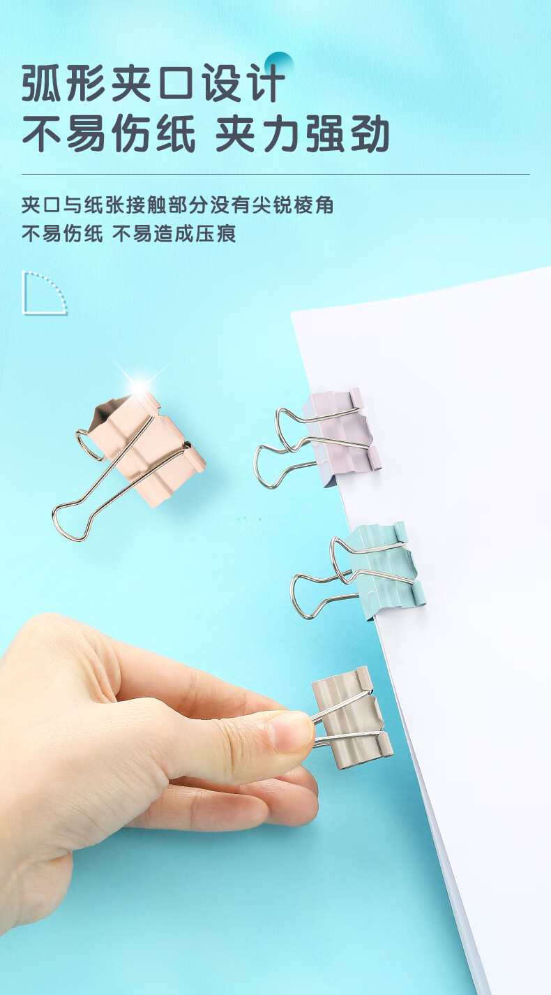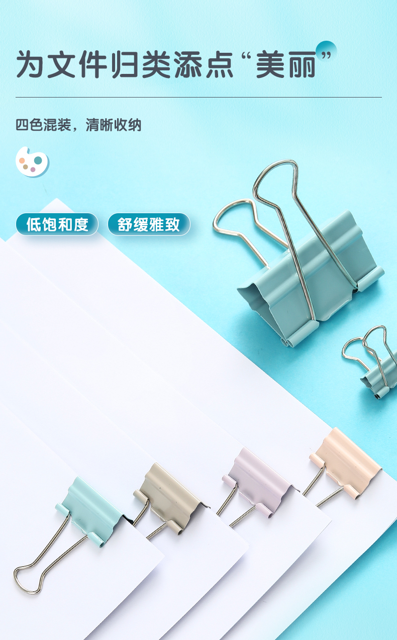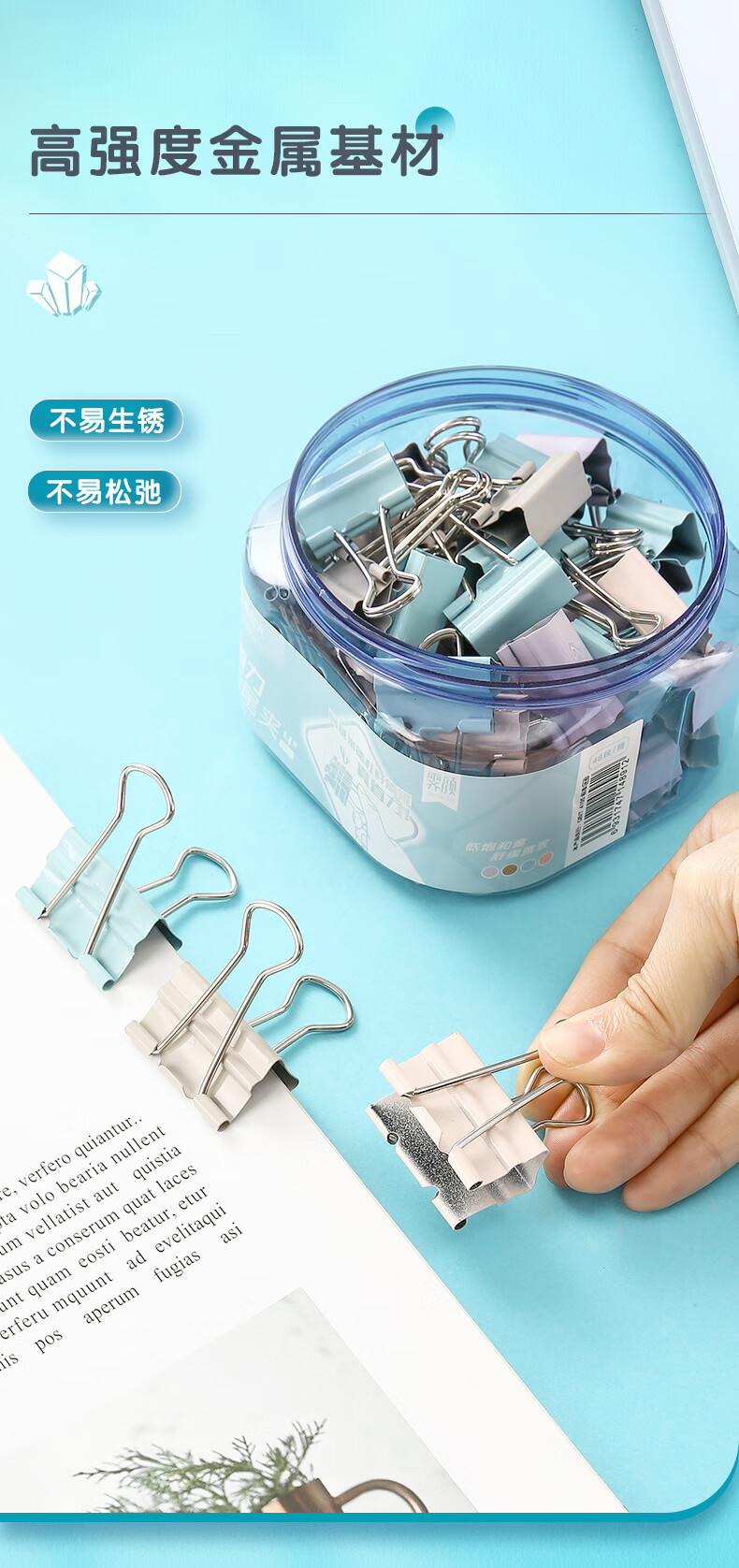 商品名稱:晨光ABS916Y9 省力長(zhǎng)尾夾 5#19mm彩色金屬燕尾夾 莫蘭迪系列票據(jù)夾子 40只/筒