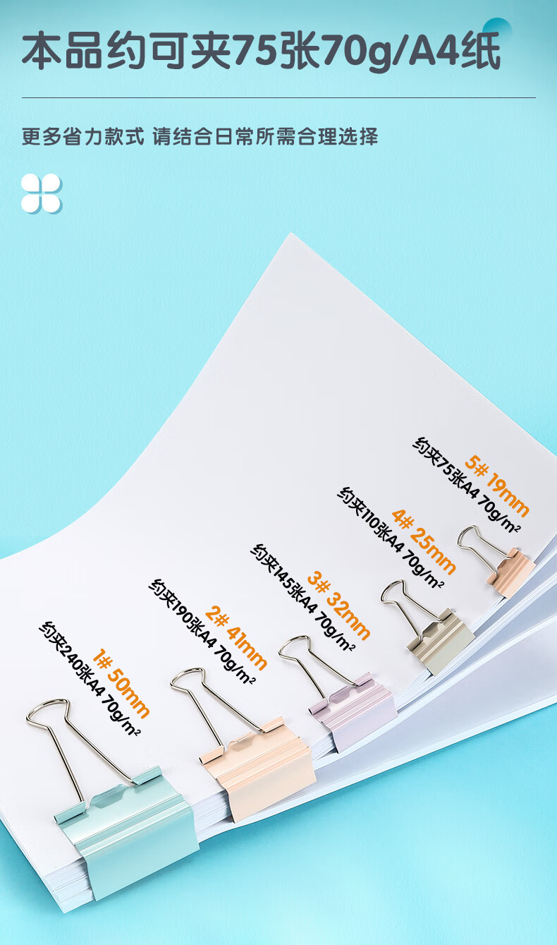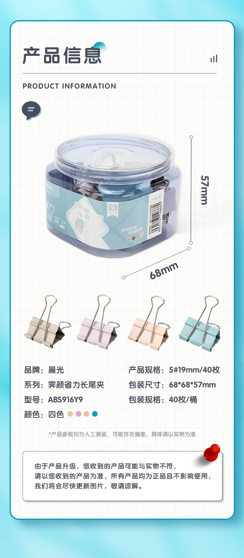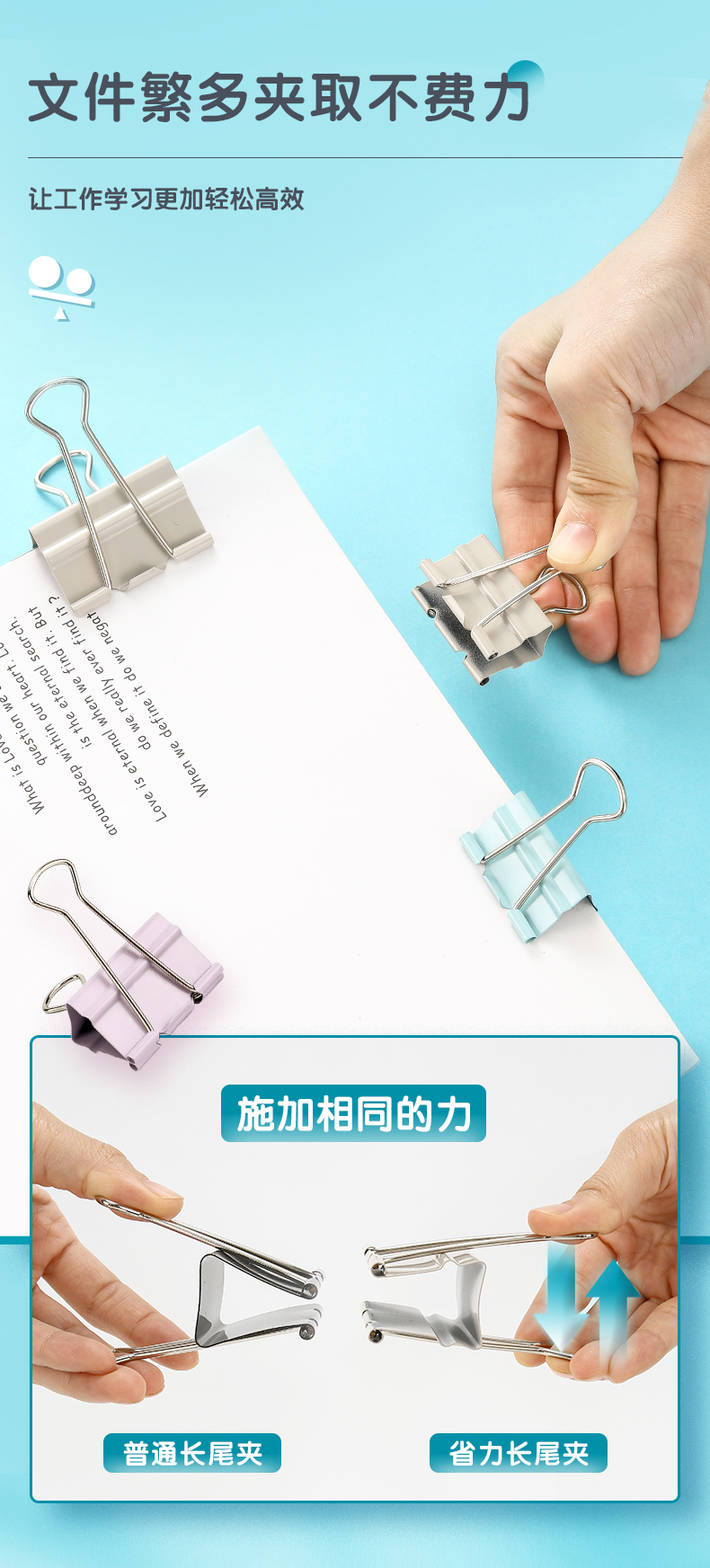 商品名稱:晨光ABS916Y9 省力長(zhǎng)尾夾 5#19mm彩色金屬燕尾夾 莫蘭迪系列票據(jù)夾子 40只/筒