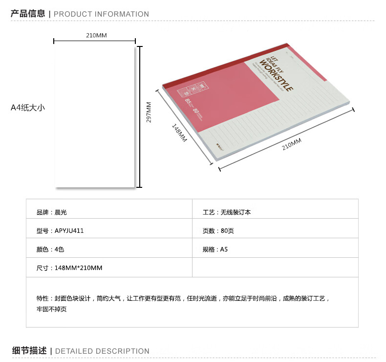 商品名稱:晨光APYJU411 軟抄本 A5/80頁無線裝訂本記事本筆記本單線本 顏色隨機 單本裝
