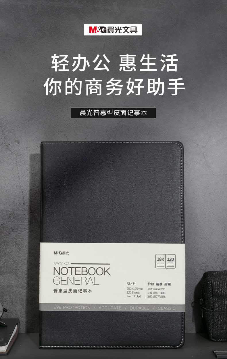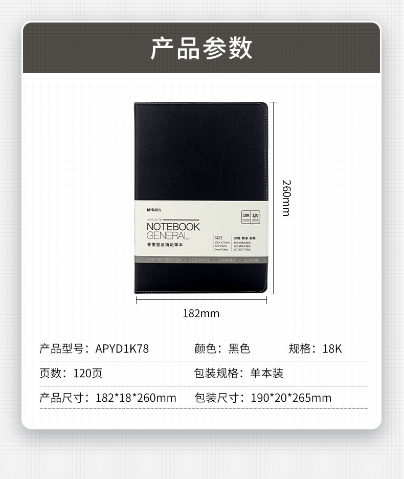 商品名稱:晨光APYD1K78 筆記本 B5/18K會(huì)議記錄皮面本 120張黑色商務(wù)記事本 單本裝