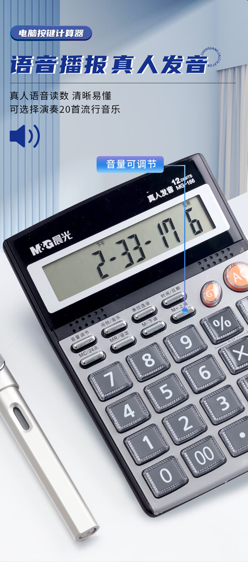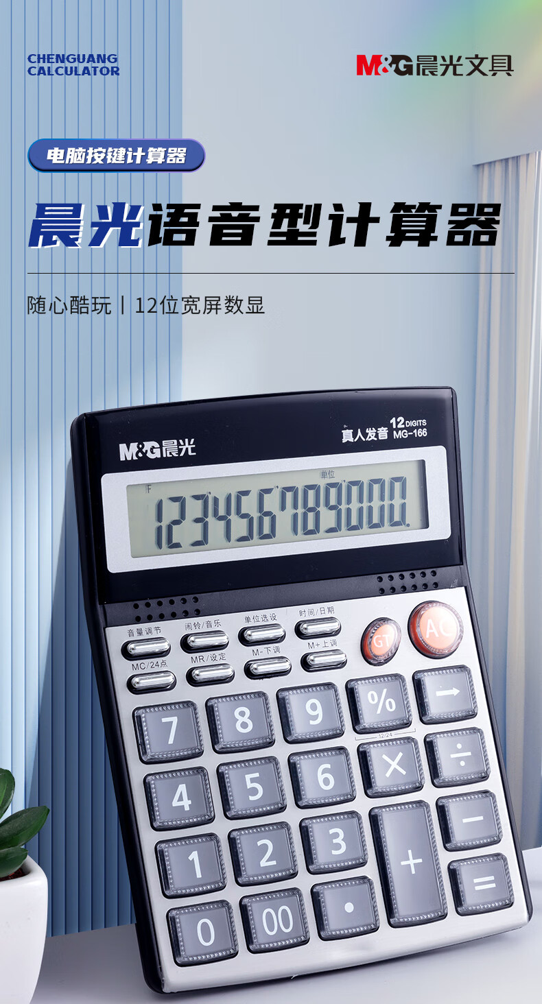 商品名稱:晨光ADG98715 大屏金屬面板真人語(yǔ)音計(jì)算器 12位顯示大屏幕桌面計(jì)算機(jī) 單個(gè)裝