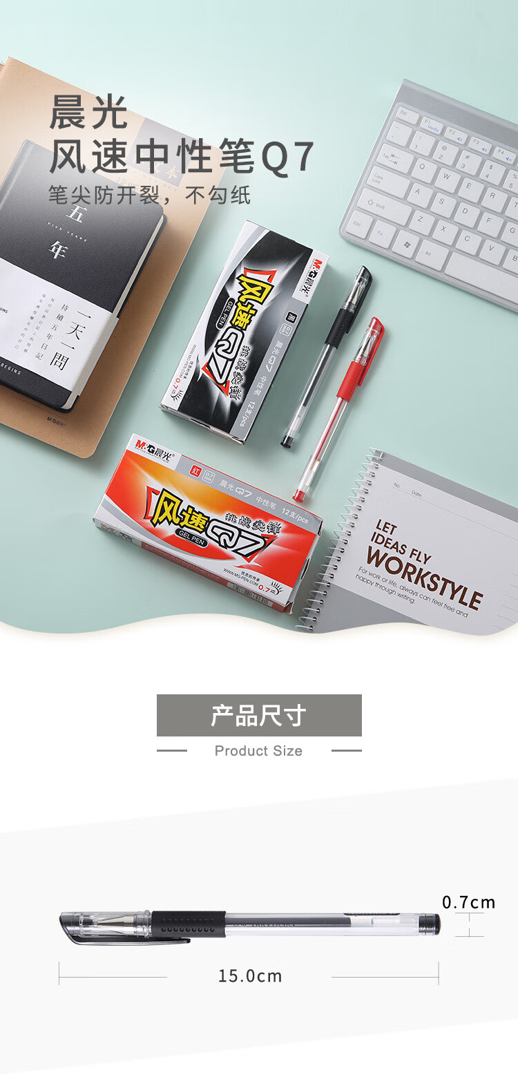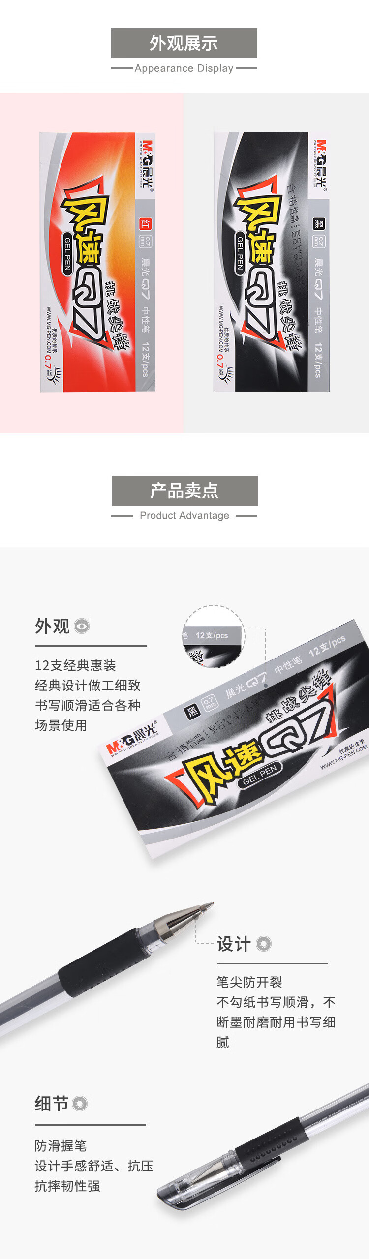商品名稱:晨光AGP30105 風(fēng)速Q(mào)7黑色中性筆 0.7mm拔蓋款會(huì)議筆簽字筆水筆 12支/盒