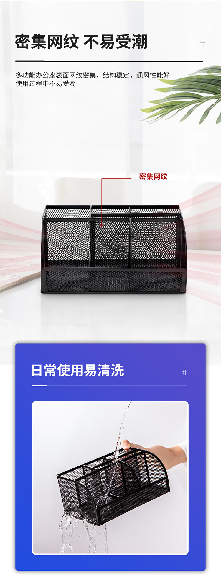 商品名稱:得力8903 多功能七格組合筆筒 金屬網(wǎng)紋桌面收納盒 辦公用品 黑色 單個(gè)裝
