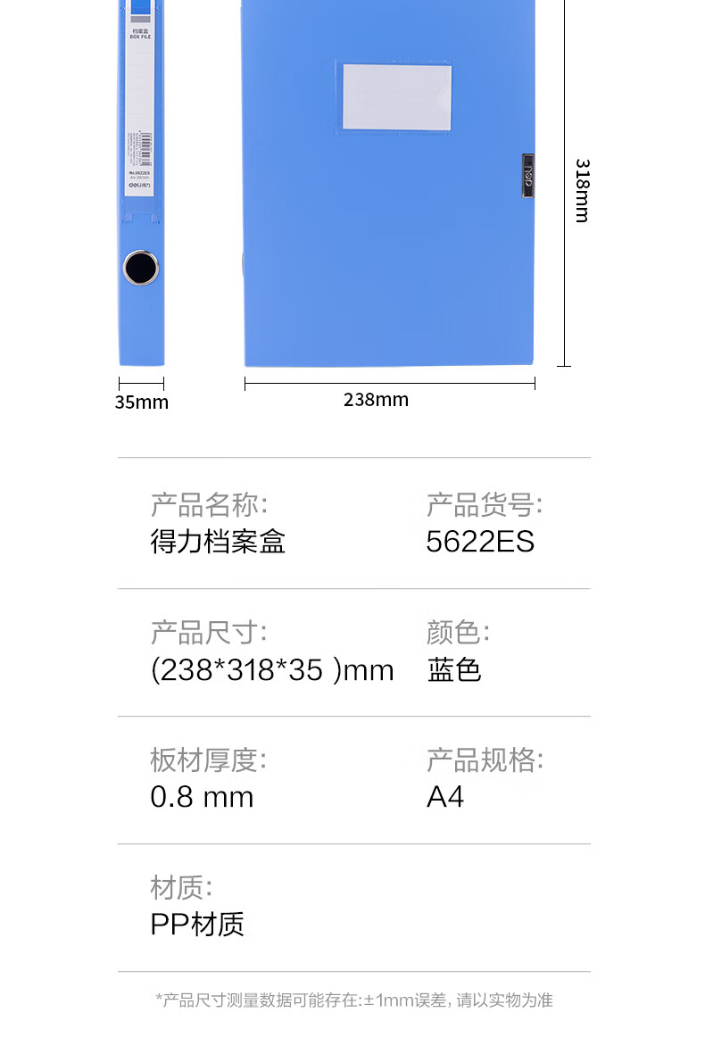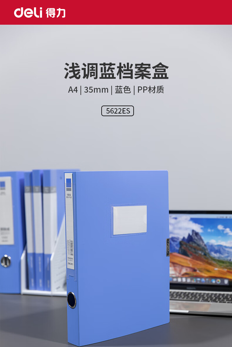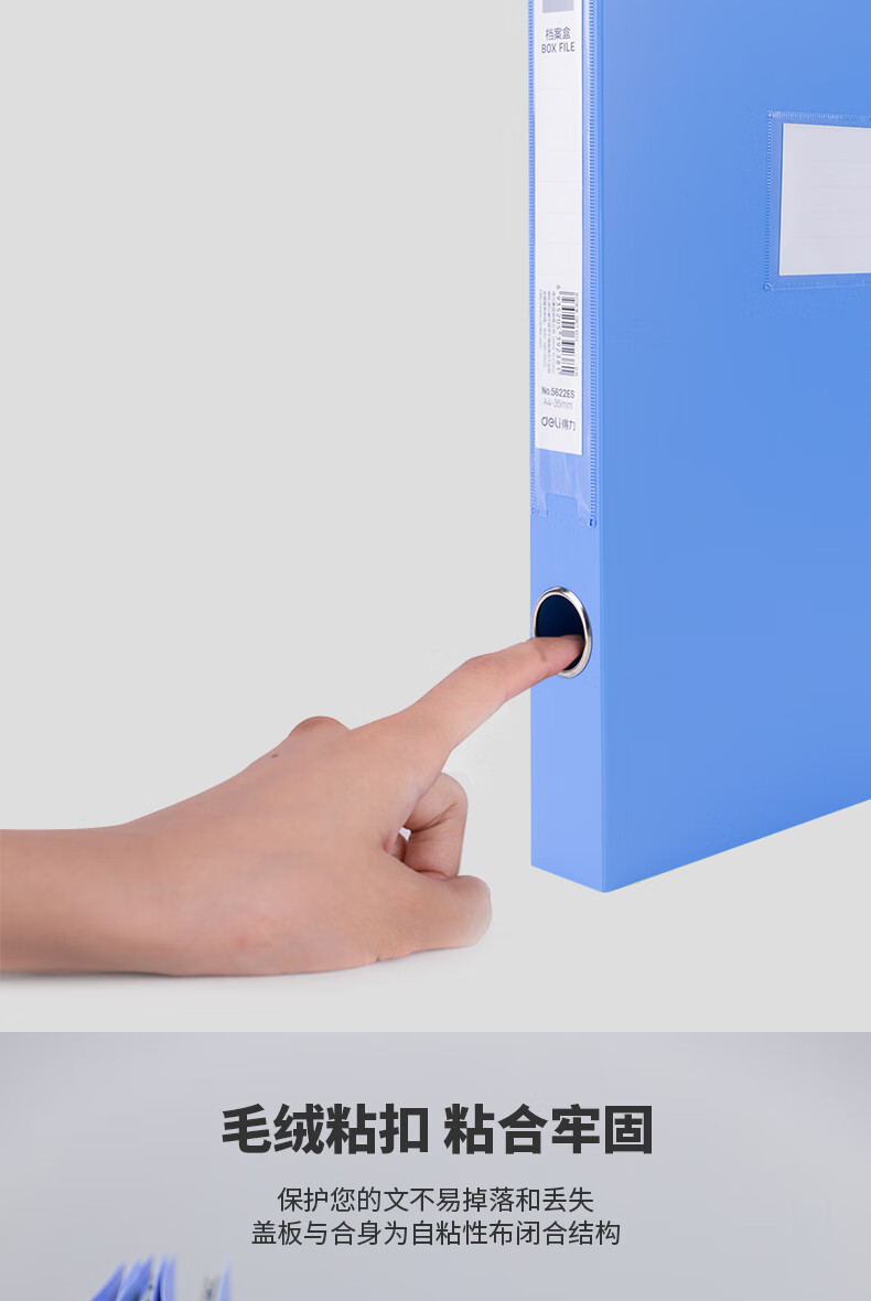 商品名稱:得力5622ES 粘扣檔案盒 35mmA4塑料文件盒收納資料盒 辦公用品 藍(lán)色 單只裝