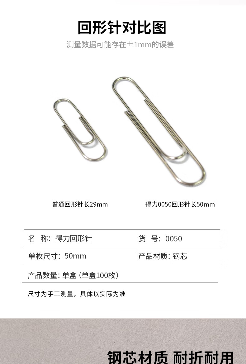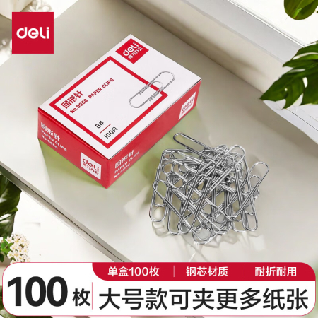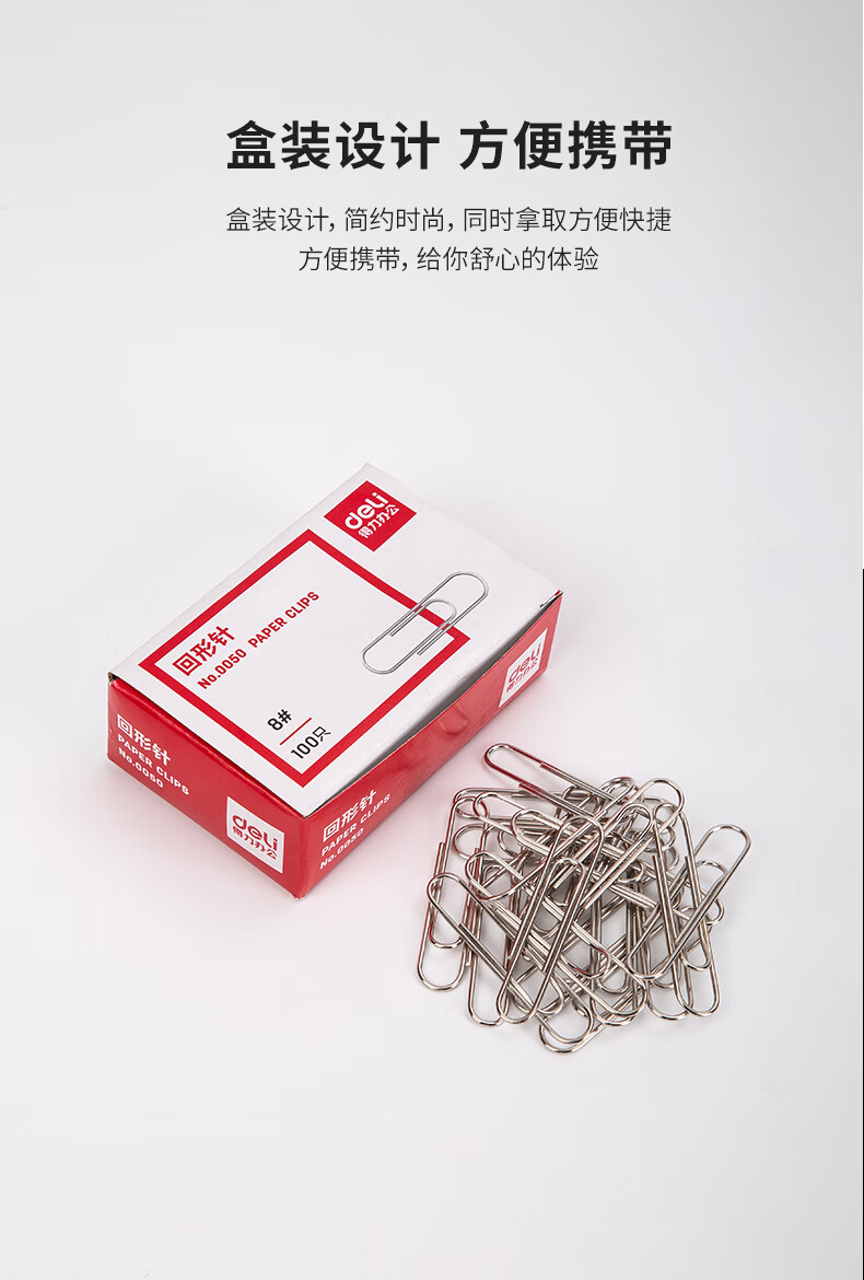 商品名稱:得力0050 回形針 50mm大號(hào)電鍍金屬曲別針 辦公用品文件收納 100枚/盒