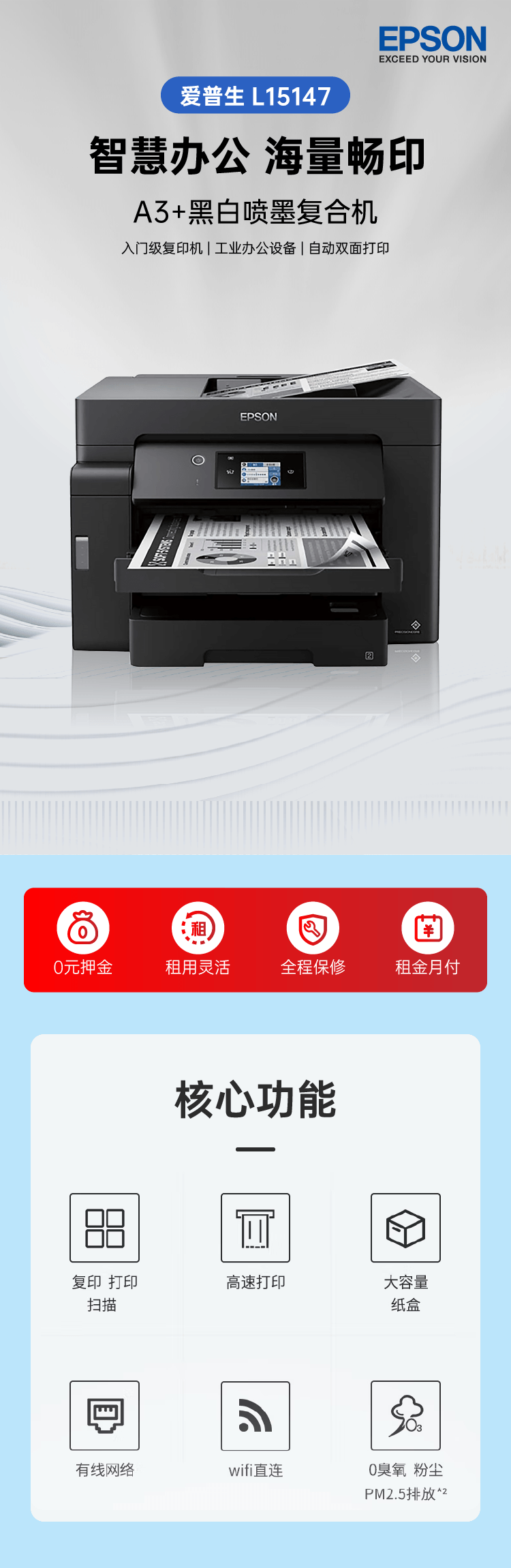 商品名稱:愛(ài)普生黑白噴墨復(fù)合機(jī)出租 茂名出租A3中速?gòu)?fù)印/打印/掃描一體機(jī)打印機(jī)租賃(月)