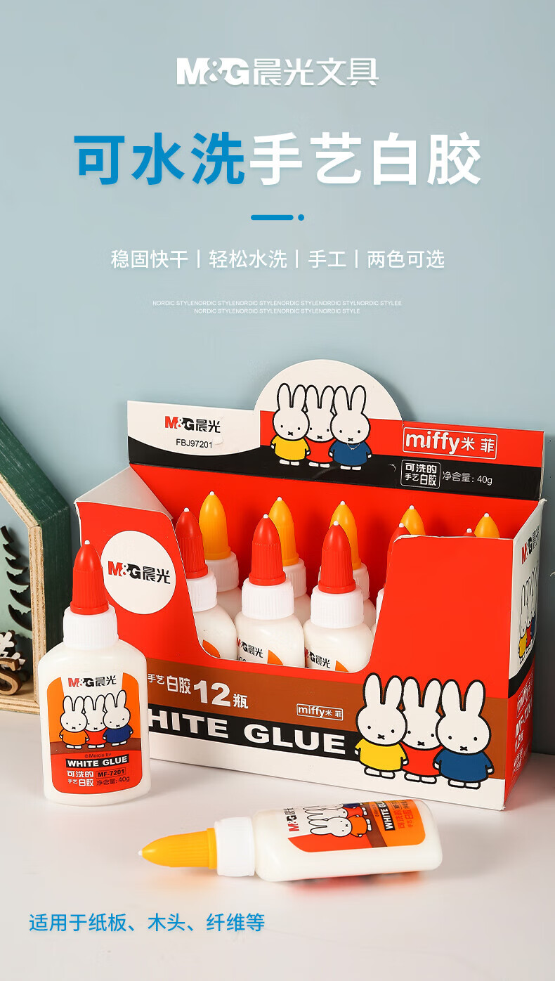 商品名稱:晨光MF7201 可水洗手工DIY白膠 40g高粘性白乳膠水 顏色隨機(jī) 單支裝