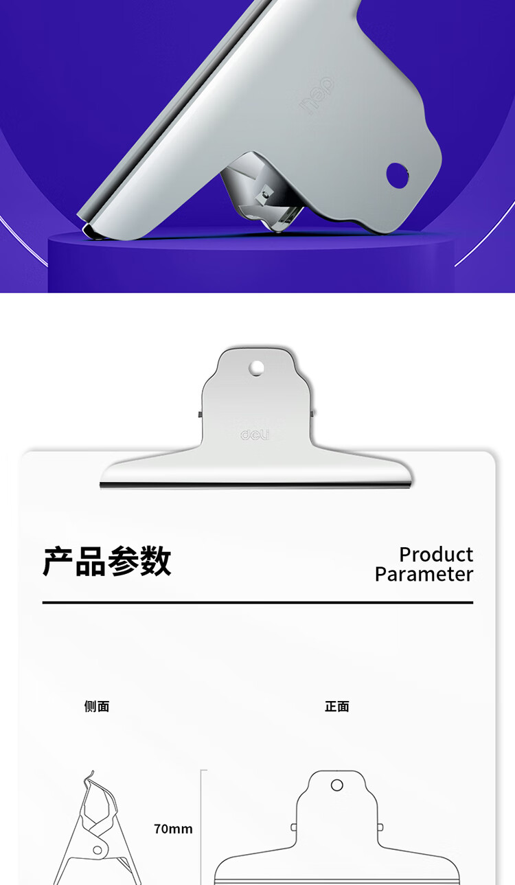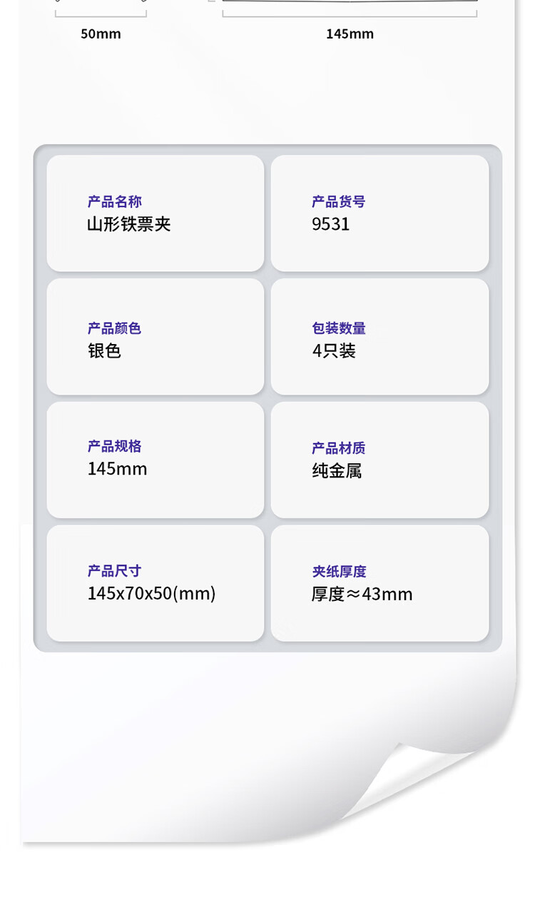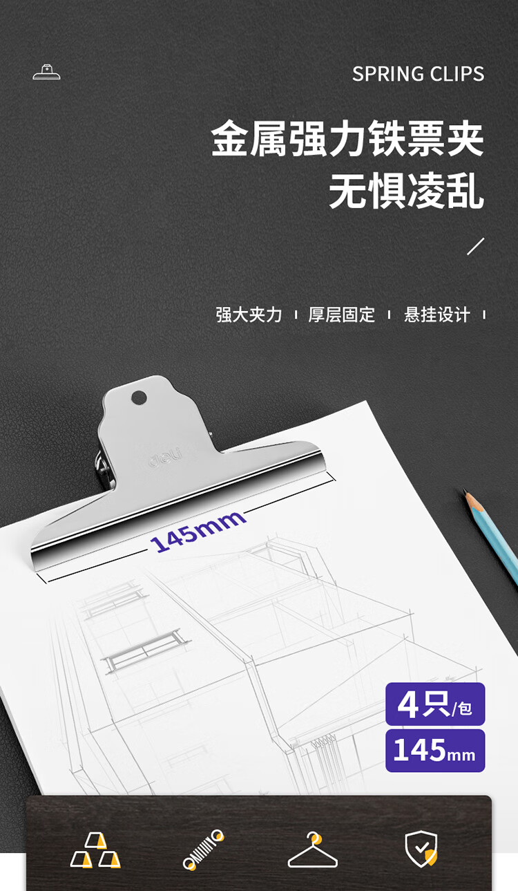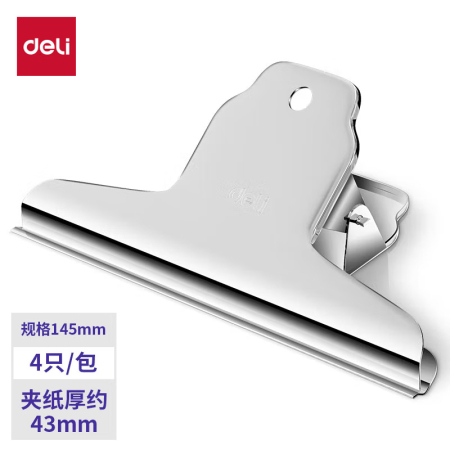商品名稱:得力9531 山形鐵票夾 145mm大號(hào)畫板夾 財(cái)務(wù)票據(jù)夾 辦公用品 4只/包