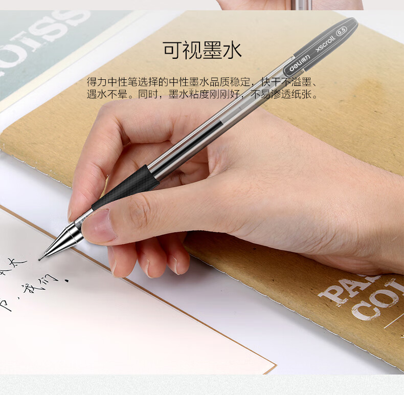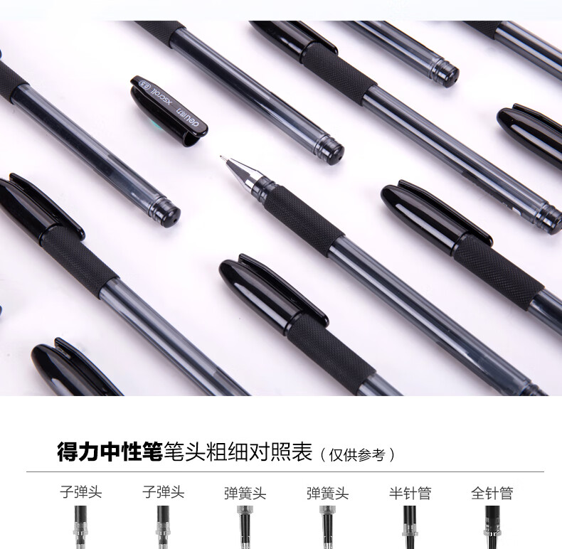 商品名稱:得力S55 拔帽中性筆 0.5mm半針管黑色水筆會(huì)議簽字筆 12支/盒