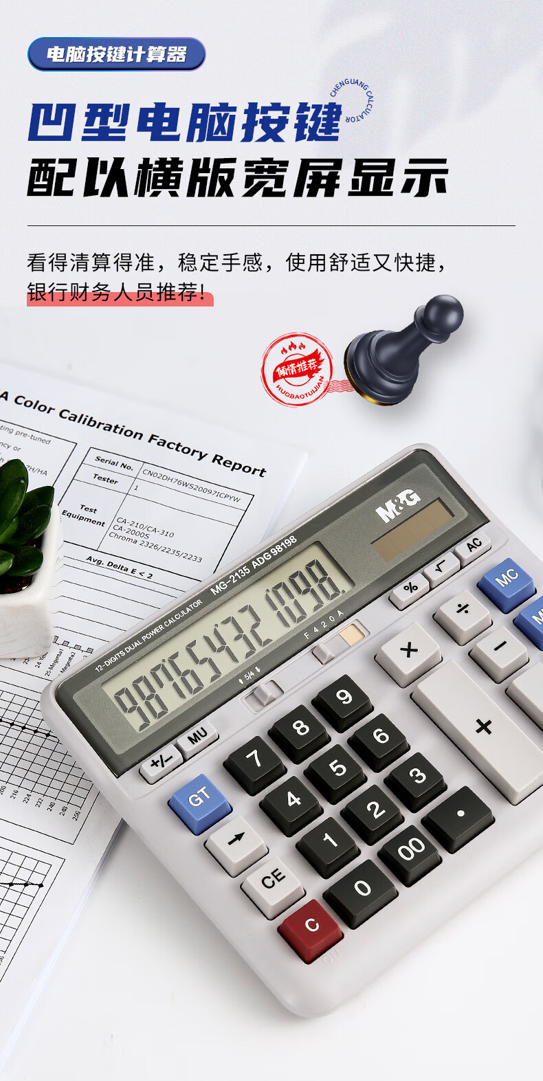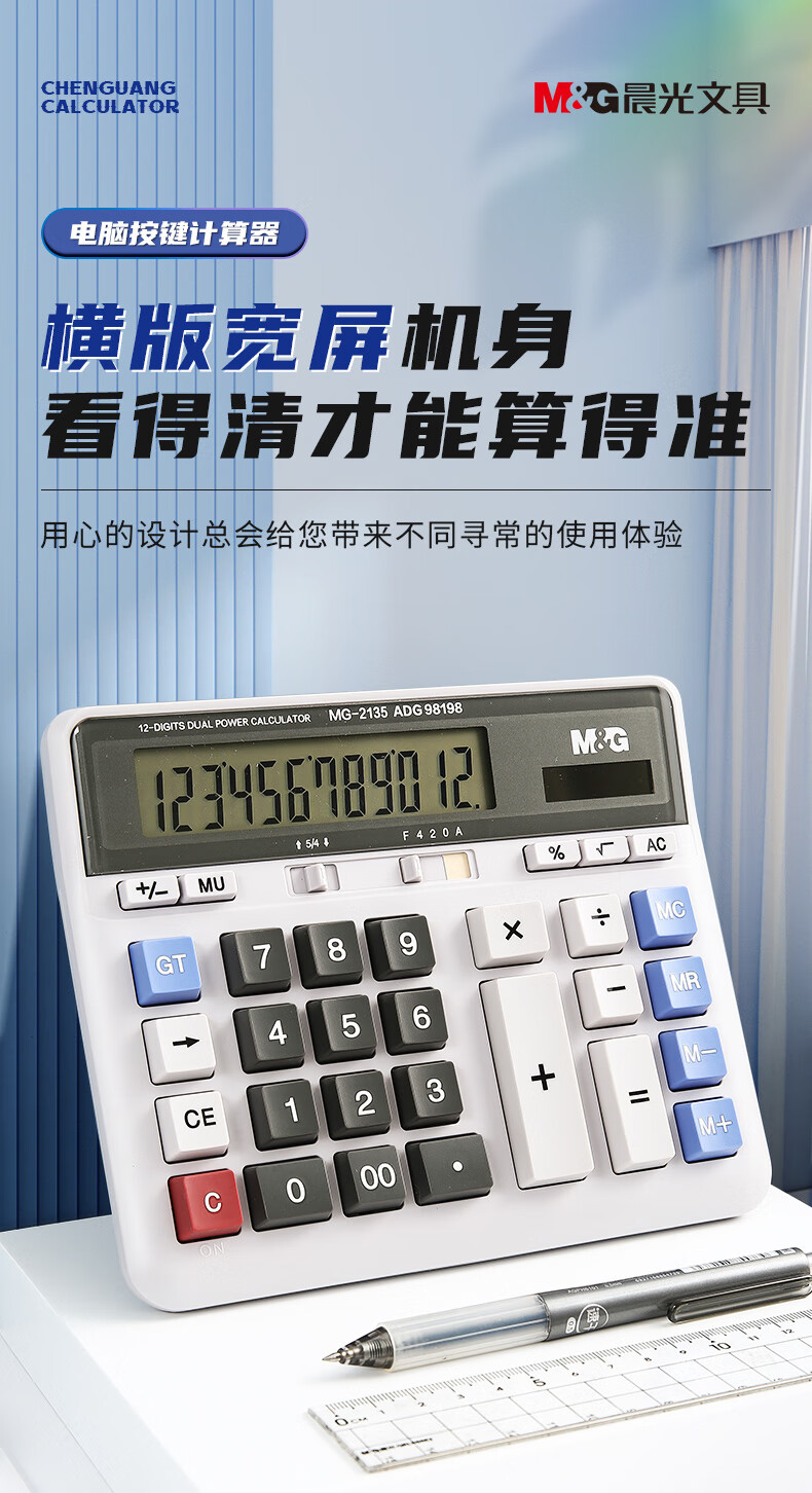 自營晨光ADG98198 計算器 12位大屏雙電源計算機 單個裝