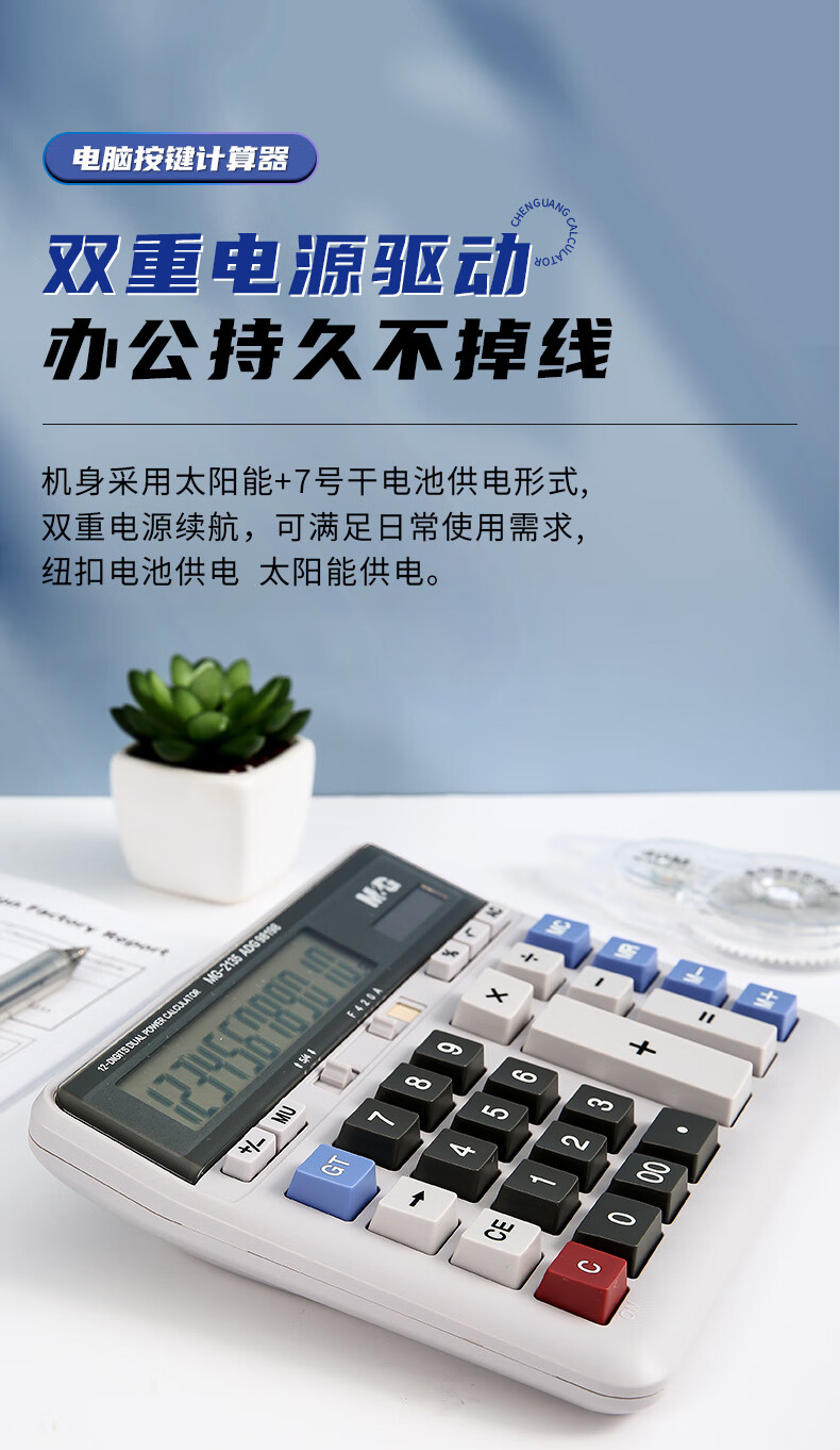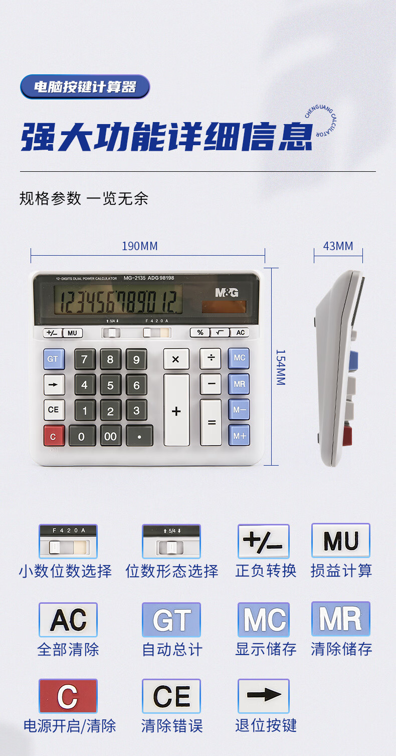 商品名稱:晨光ADG98198 計算器 12位大屏雙電源計算機 單個裝