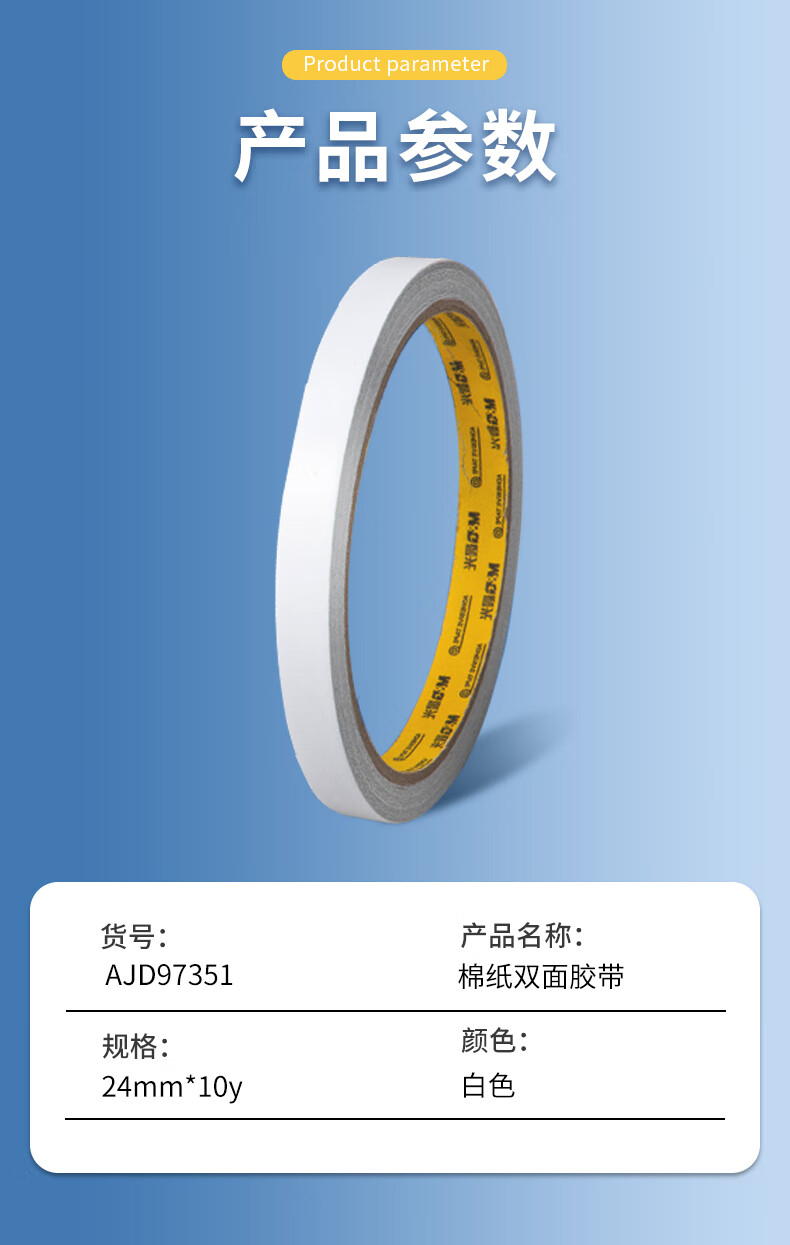 商品名稱:晨光AJD97351 雙面膠 高粘性棉紙雙面膠帶24mm*10y(9.14m/卷) 單卷裝